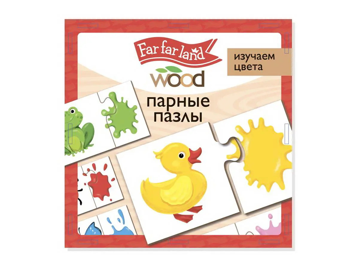 Пазлы парные "Изучаем цвета" 20 эл Far far land Wood. Состав: 10 деревянных пазлов из пазлов из 20 элементов, деревянная коробка. (16,5х16,5х4,5 см). Материал: хдф, бумага.Игра предназначена для детей старше 3 лет.