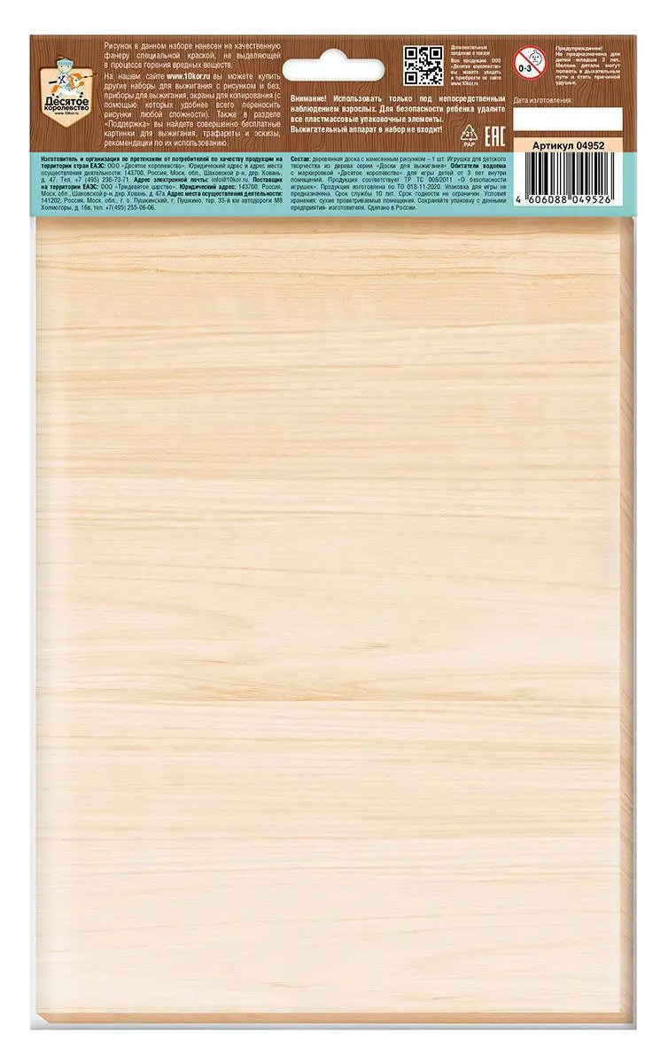 Доска для выжигания 1 шт "Обитатели водоема" А4 (европодвес).Состав: доска с нанесенным рисунком - 1 шт. (21х28,5 см).Материалы: дерево, картон. Для детей старше 6 лет.