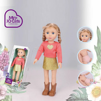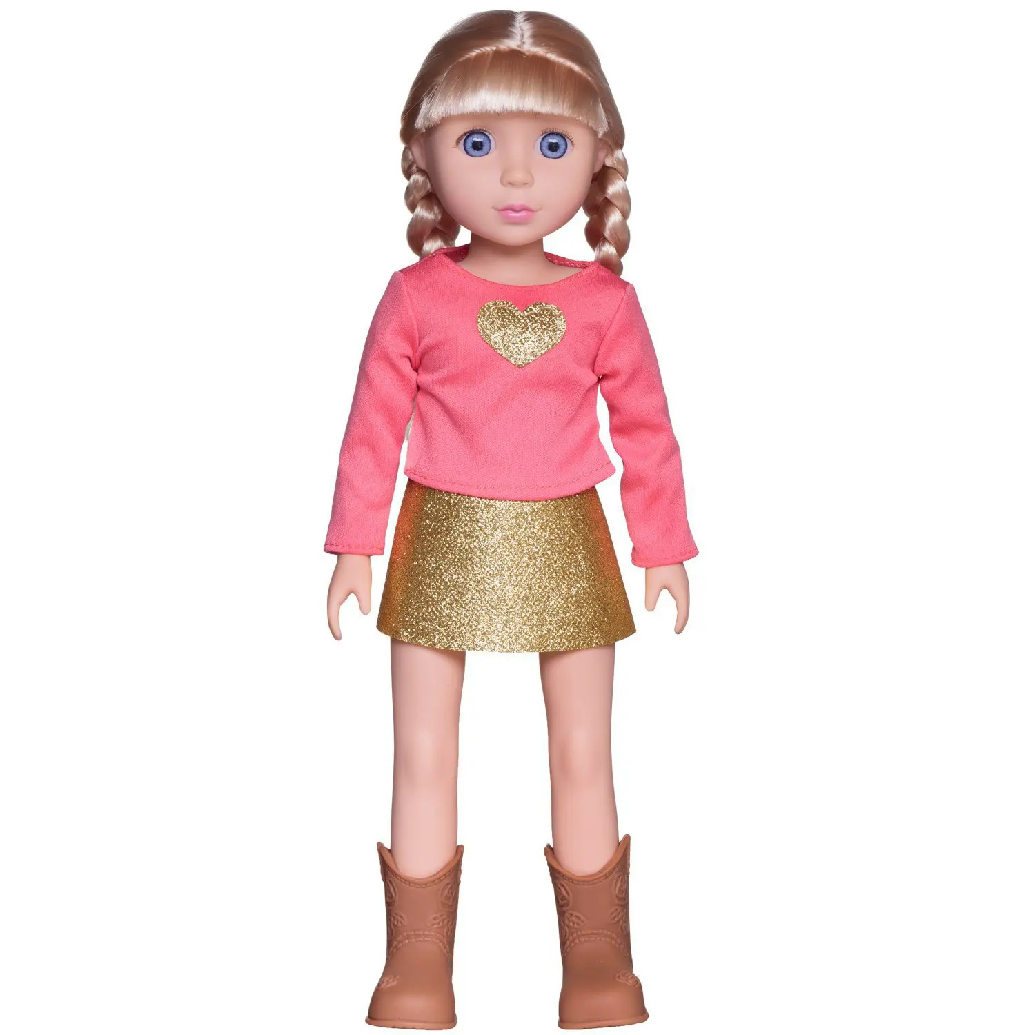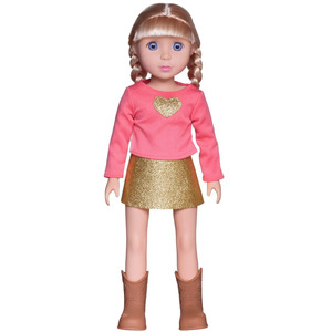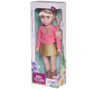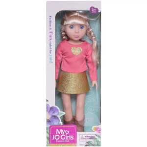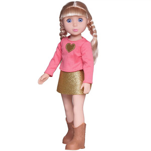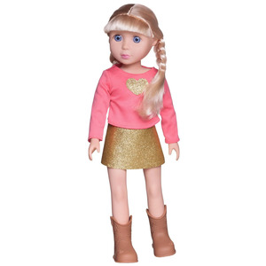 Очаровательная, миловидная, большая кукла от бренда Junfa будет хорошим дополнением коллекции кукол девочки, ей обязательно понравится такая красивая новая подружка. У куклы длинные, густые, светлые волосы, заплетенные в две косички, большие выразительные глаза. На ней одеты золотая короткая юбка, кофта персикового цвета с золотым сердечком, хлопковое нижнее белье. На ногах куклы обуты коричневые сапожки. Руки и ноги могут вращаться на 360 градусов, кукла может стоять прямо. Играя с ней, девочка сможет разыгрывать сценки, придумывая интересные сюжеты.Высота куклы: 36 см.