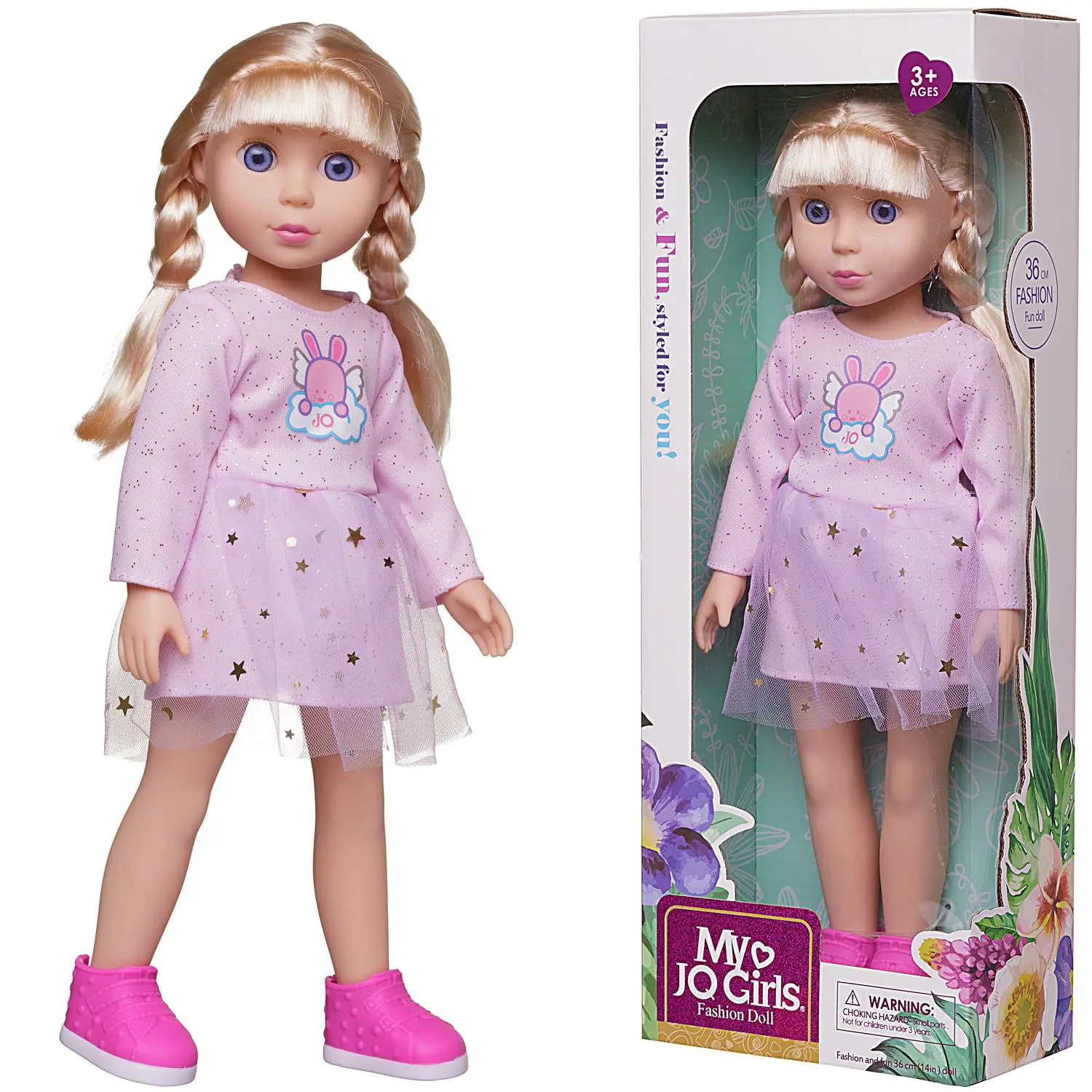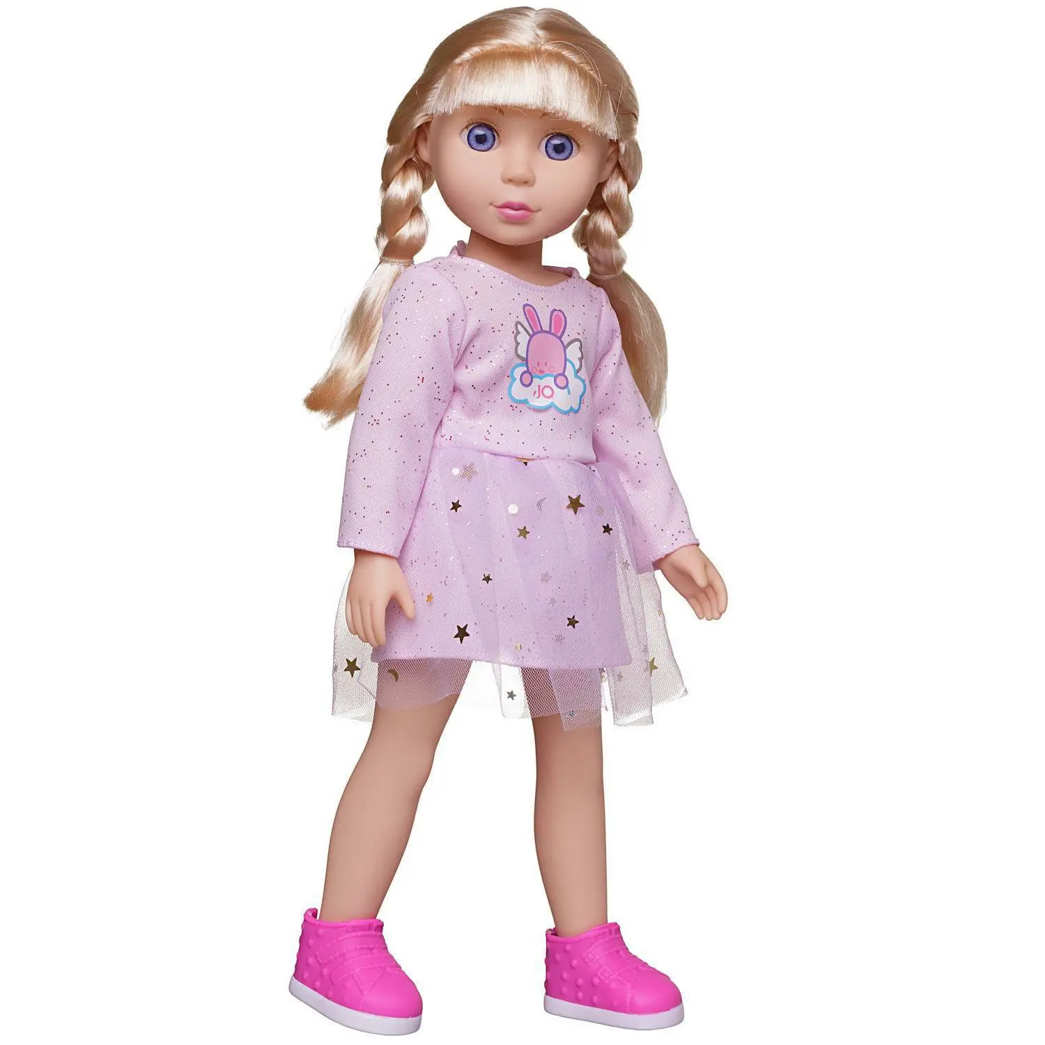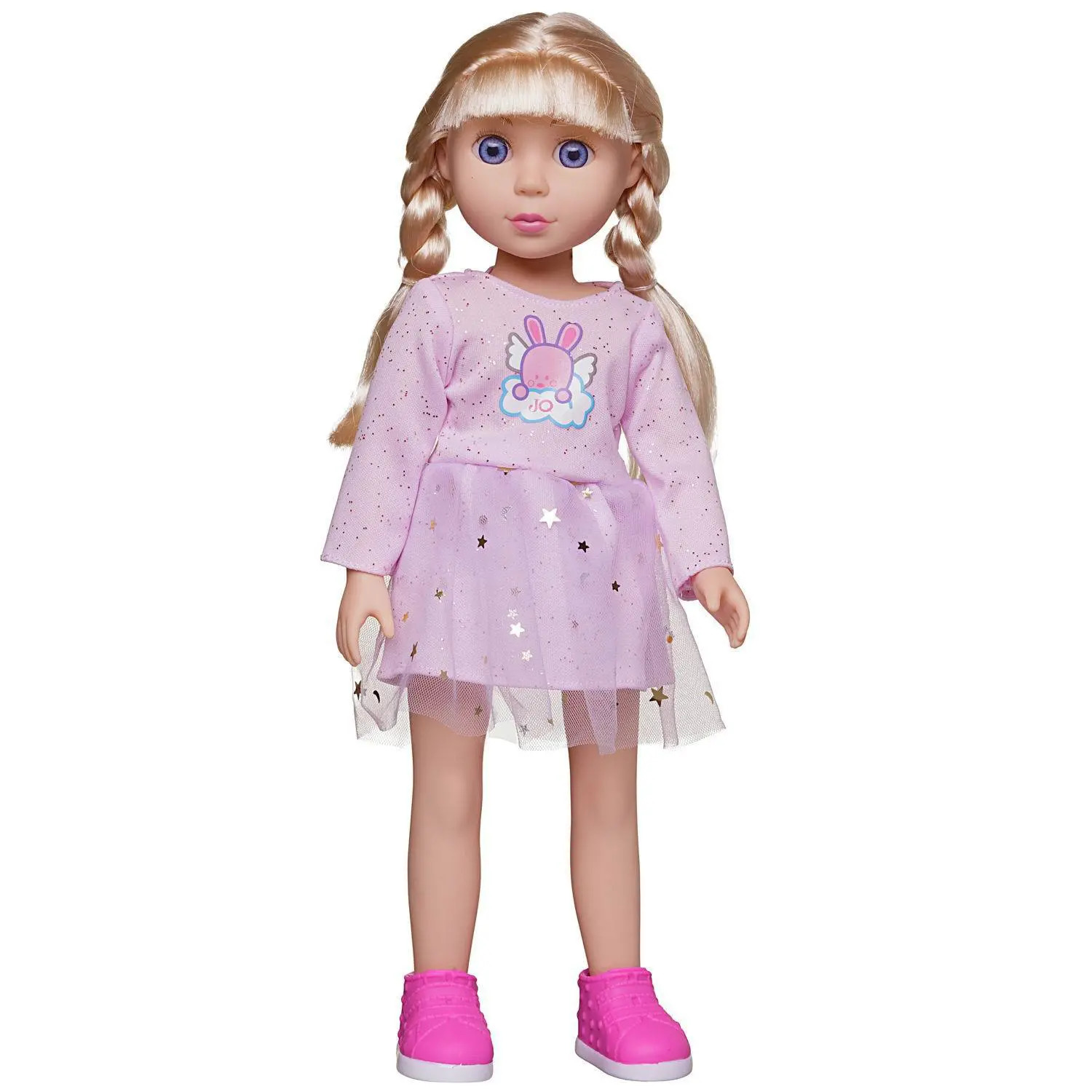 Очаровательная, миловидная, большая кукла от бренда Junfa будет хорошим дополнением коллекции кукол девочки, ей обязательно понравится такая красивая новая подружка. У куклы длинные, густые, светлые волосы, заплетенные в две косички. На ней одето нежно-розовое платье с мерцающими частицами. Его верхняя часть украшена аппликацией «Зайчик на облачке», юбка платья двухслойная, усыпана золотыми звездами. На ногах куклы обуты розовые ботиночки. Руки и ноги могут вращаться на 360 градусов, кукла может стоять прямо. Играя с ней, девочка сможет разыгрывать сценки, придумывая интересные сюжеты.Высота куклы: 36 см.