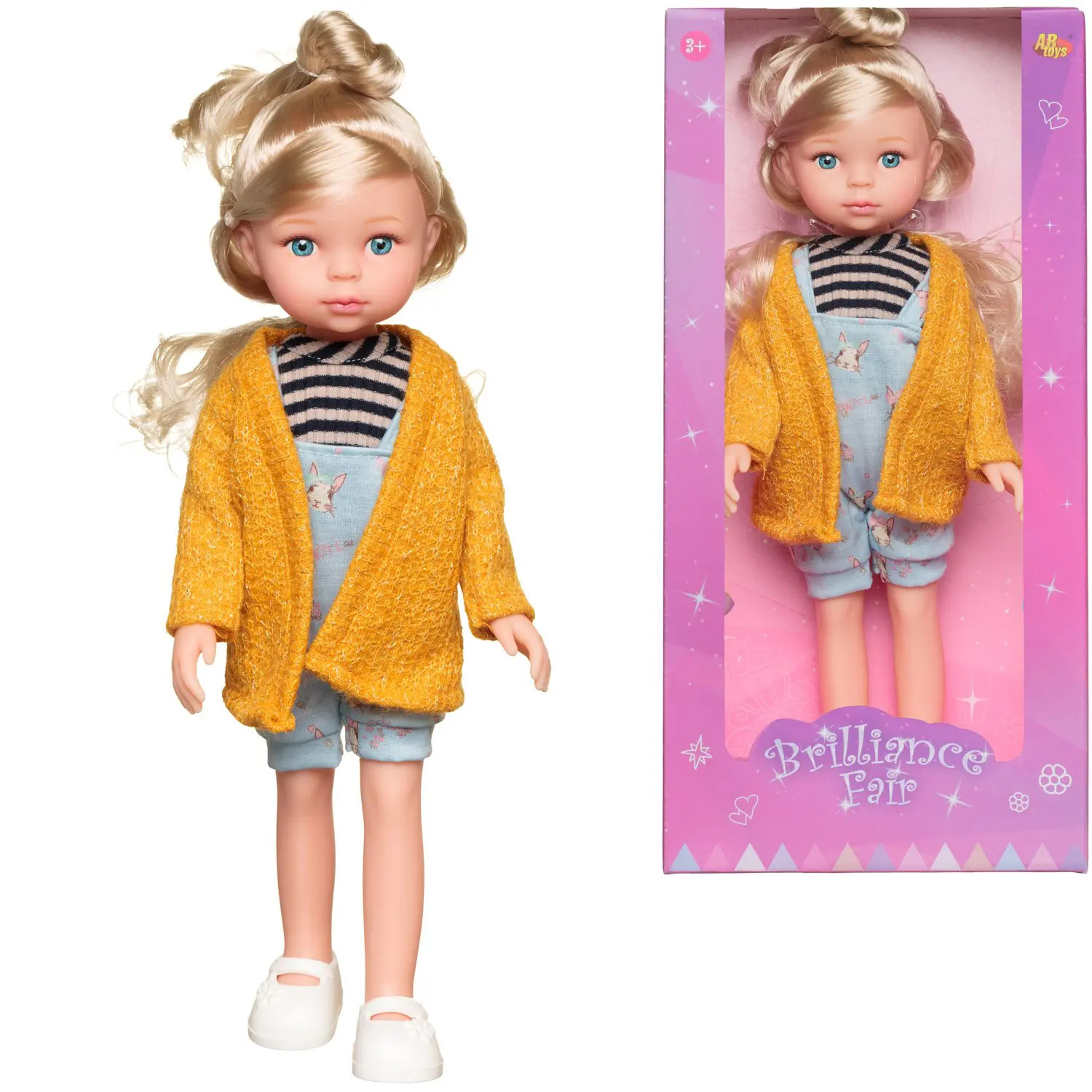 Очаровательная кукла из серии "Времена года" от бренда ABtoys станет отличным подарком для любой девочки, которая будет заботиться, ухаживать, играть с ней.Игрушка напоминает миловидную модную девочку с выразительными серо-голубыми глазами и длинными золотистыми волосами. Кукла одета в короткий комбинезон с принтом и вязаный желтый кардиган. На ногах одеты белые туфельки.