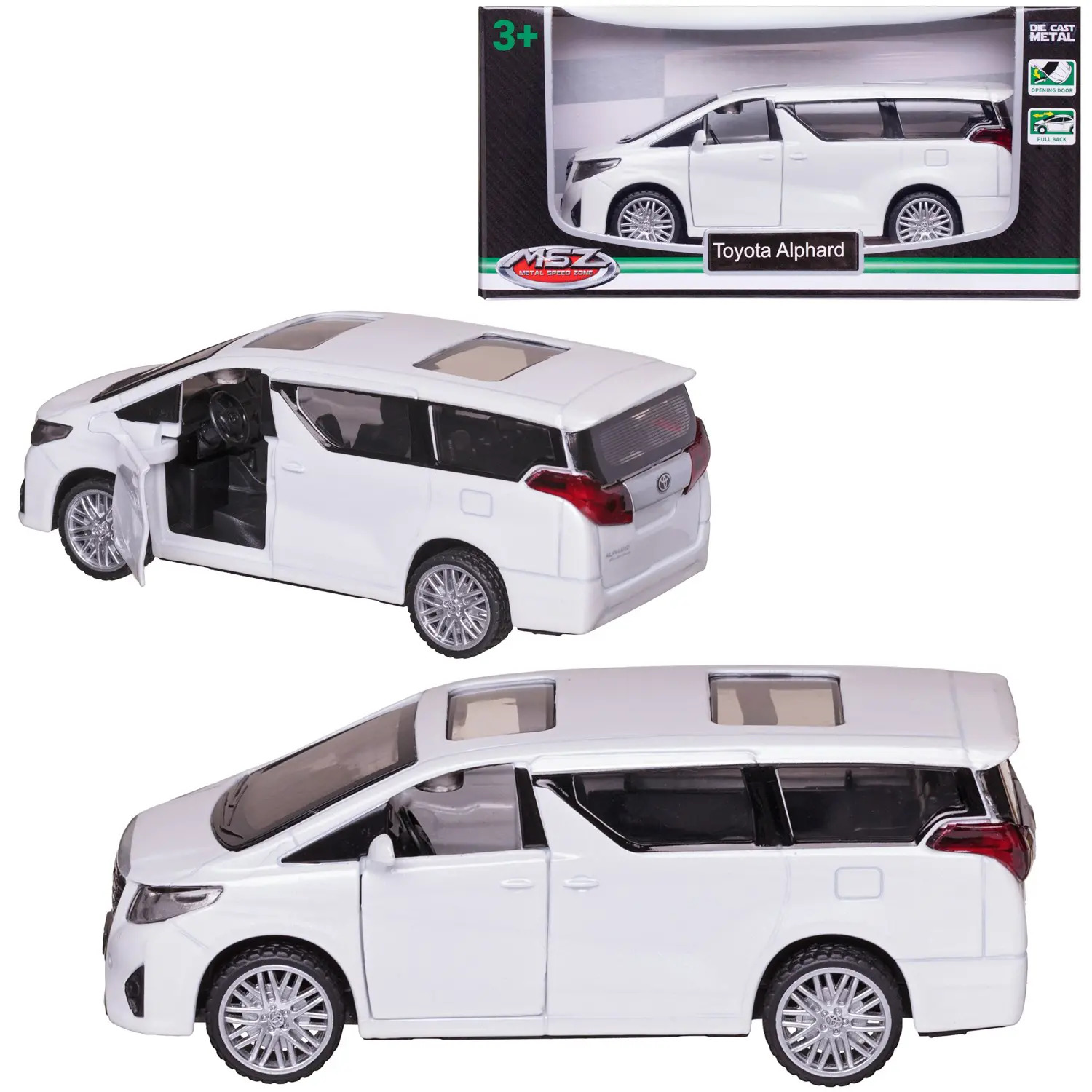 Машинка металлическая MSZ серия 1:43 Toyota Alphard, цвет белый, инерционный механизм, двери открываются