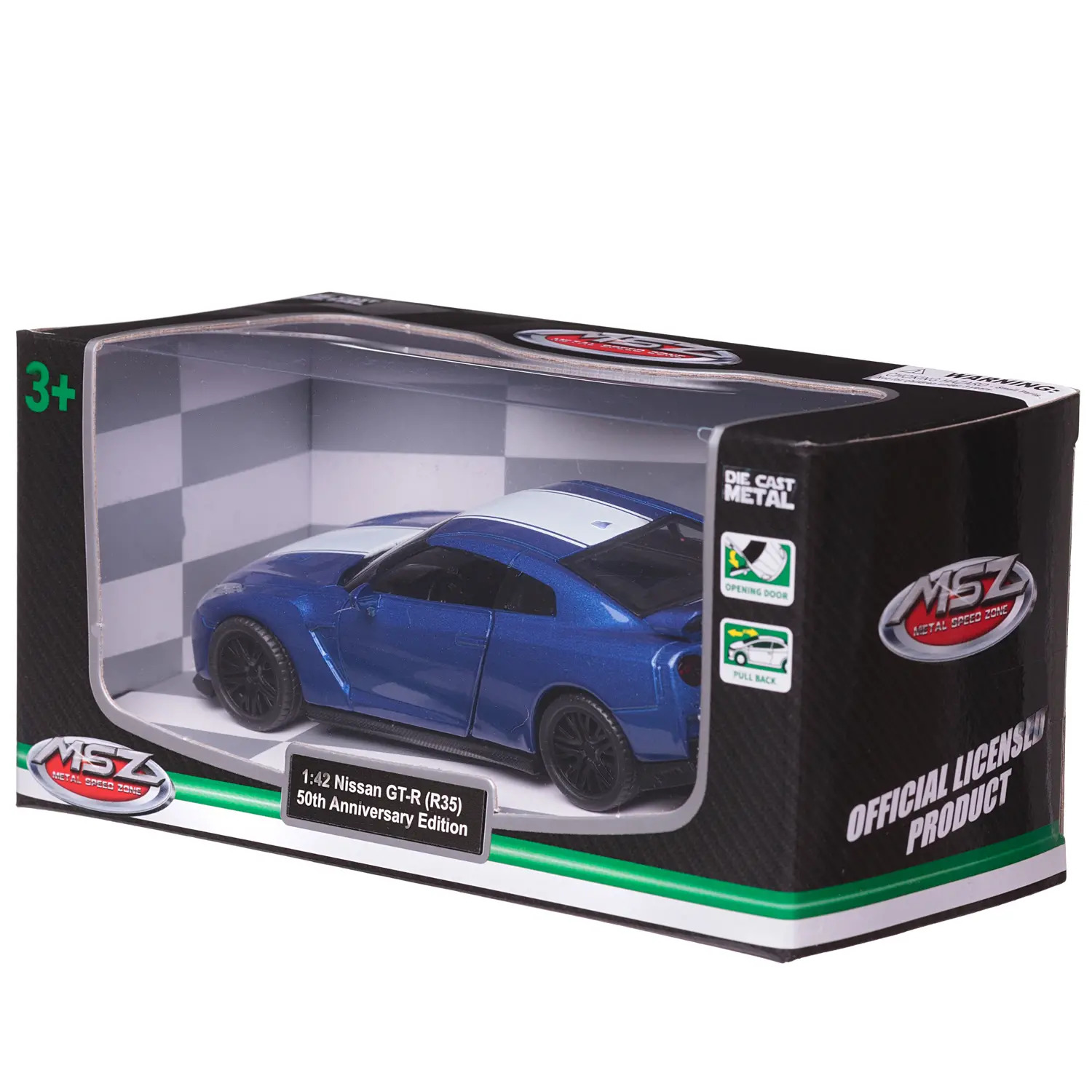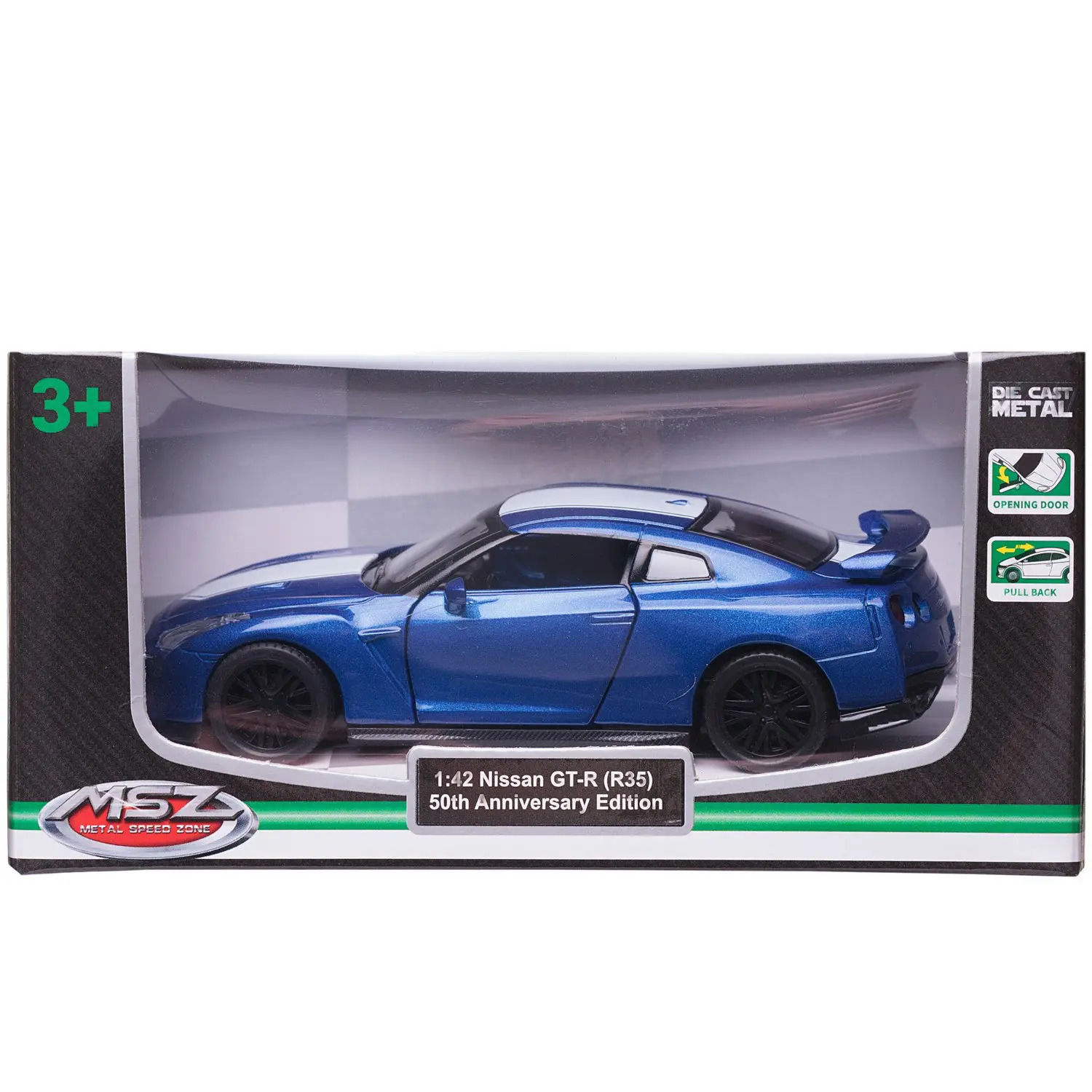 Машинка металлическая MSZ серия 1:43 Nissan GT-R, цвет синий, инерционный механизм, двери открываются