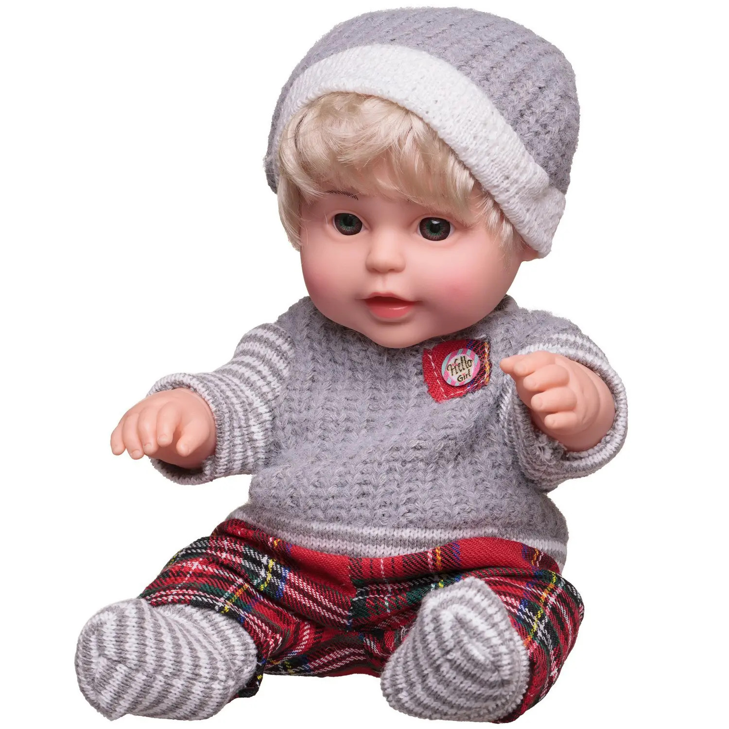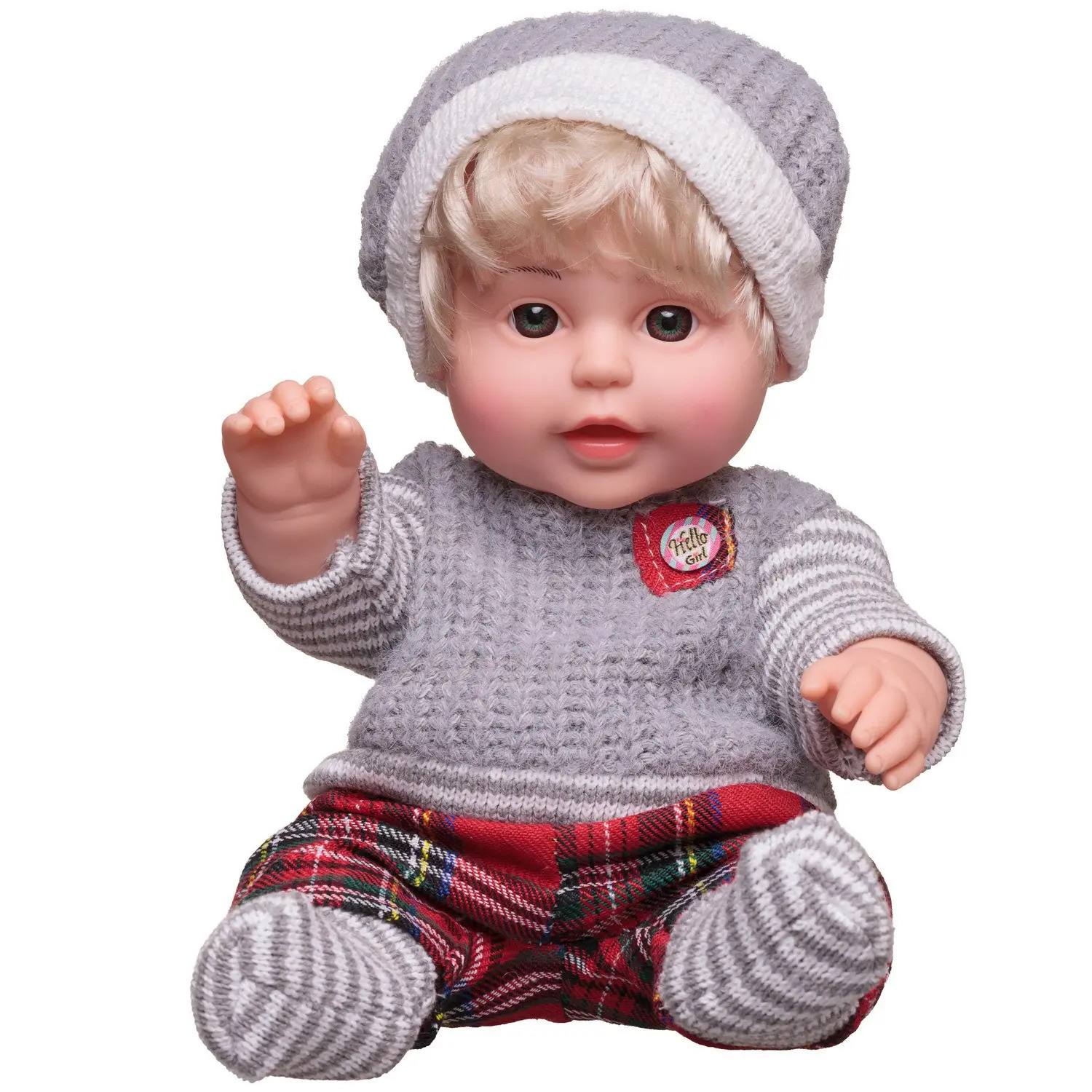 Пупс Junfa 34 см в серых свитере и шапочке, красно-черных брюках