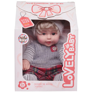 Большой симпатичный малыш-пупс из серии “Lovely Baby” от бренда Junfa обязательно понравится маленькой девочке. Пупс выглядит реалистично, у него подвижные руки, ноги, голова, выразительные глазки. На малыше одеты красные в клетку штанишки, теплые вязаные серо-белые свитер, носочки и шапочка. Одежду можно снять, пупса искупать. Девочка не захочет расставаться со своей любимой игрушкой, но благодаря ее размеру она сможет взять его с собой на прогулку или в любую поездку. Игрушка упакована в элегантную коробку, будет отличным подарком для любой девочки.Высота пупса: 34 см. Глаза не закрываются, тело пластиковое.