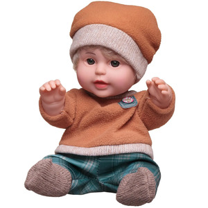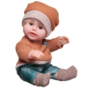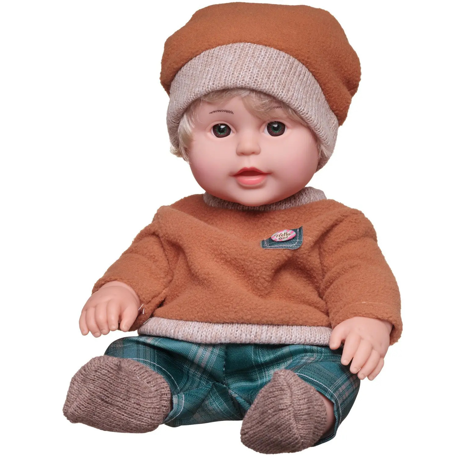 Пупс Junfa 34 см в коричневых толстовке и шапочке, брюках в клетку