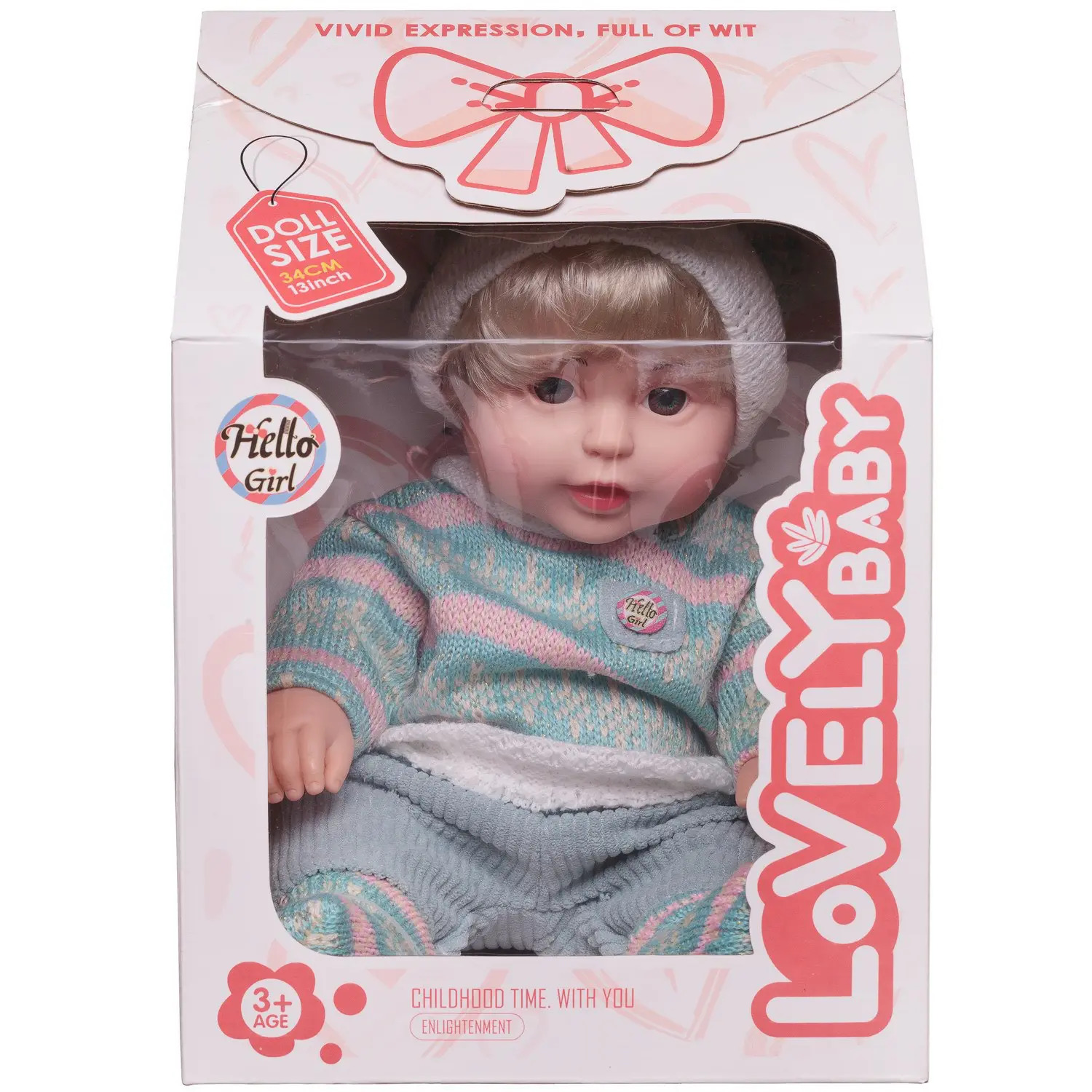 Большой симпатичный малыш-пупс из серии “Lovely Baby” от бренда Junfa обязательно понравится маленькой девочке. Пупс выглядит реалистично, у него подвижные руки, ноги, голова, выразительные глазки. На малыше одеты вельветовые штанишки мятного цвета, теплые свитер и шапочка, на ножках - вязаные носочки. Одежду можно снять, пупса искупать. Девочка не захочет расставаться со своей любимой игрушкой, но благодаря ее размеру она сможет взять его с собой на прогулку или в любую поездку. Игрушка упакована в элегантную коробку, будет отличным подарком для любой девочки.Высота пупса: 34 см. Глаза не закрываются, тело пластиковое.
