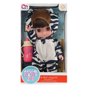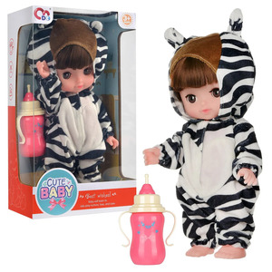 Пупс Junfa Сute Baby 24 см Зебра с бутылочкой