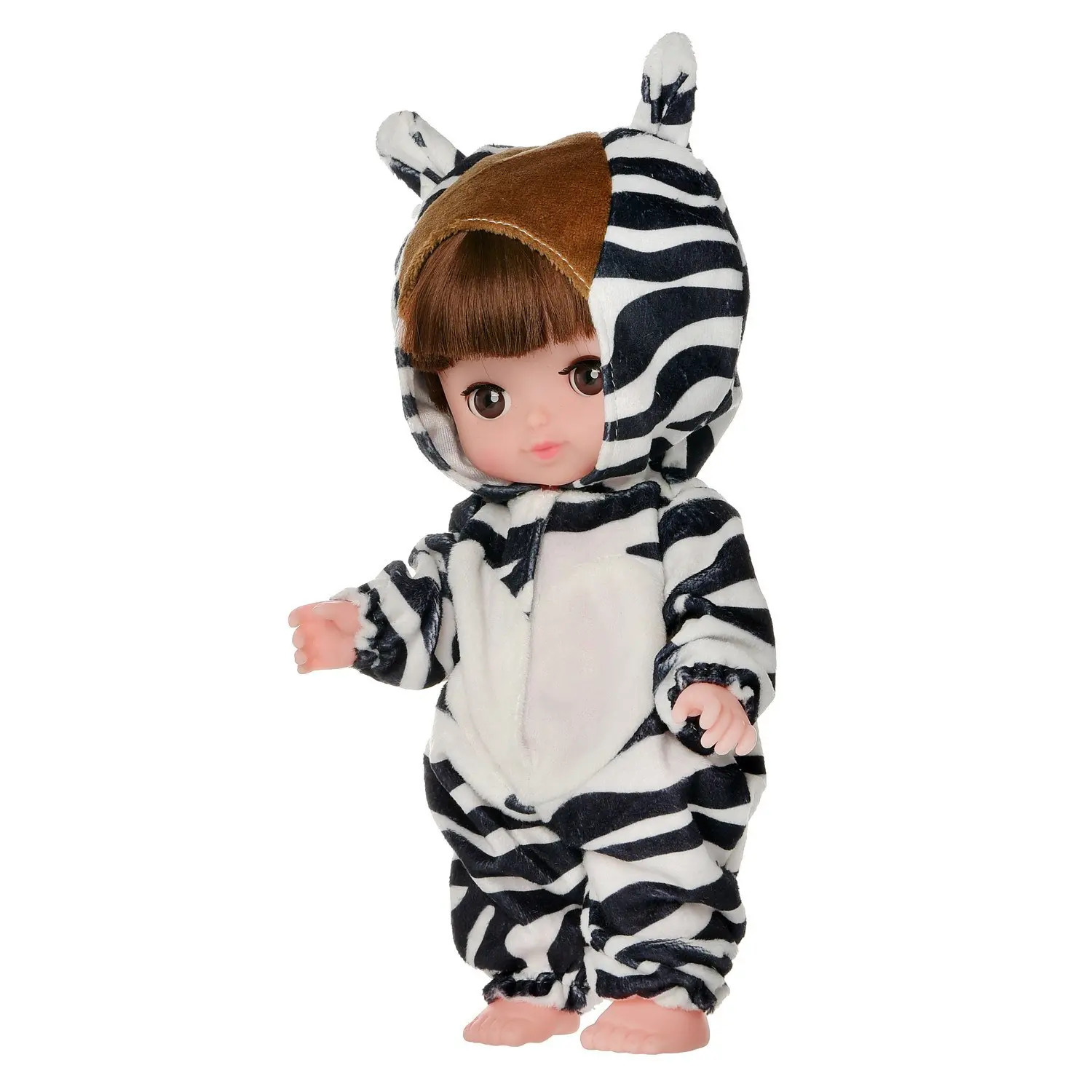 Миловидная очаровательная куколка-пупсик из серии «Сute Baby» от бренда Junfa обязательно понравится маленькой девочке. Пупс выглядит реалистично, у него подвижные руки, ноги, голова, большие выразительные глазки, густые короткие волосы. Благодаря своему костюму с капюшоном малышка-пупсик перевоплотилась в симпатичную зебру. Одежду можно снять, пупса искупать. Девочка не захочет расставаться со своей любимой игрушкой и будет брать пупса с собой на прогулку или в поездку.Высота пупса: 24 см. Глаза закрываются, тело пластиковое.