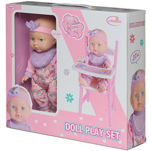 Комплектность: кукла – 1 шт., стул для кормления (сборный) – 1 шт.