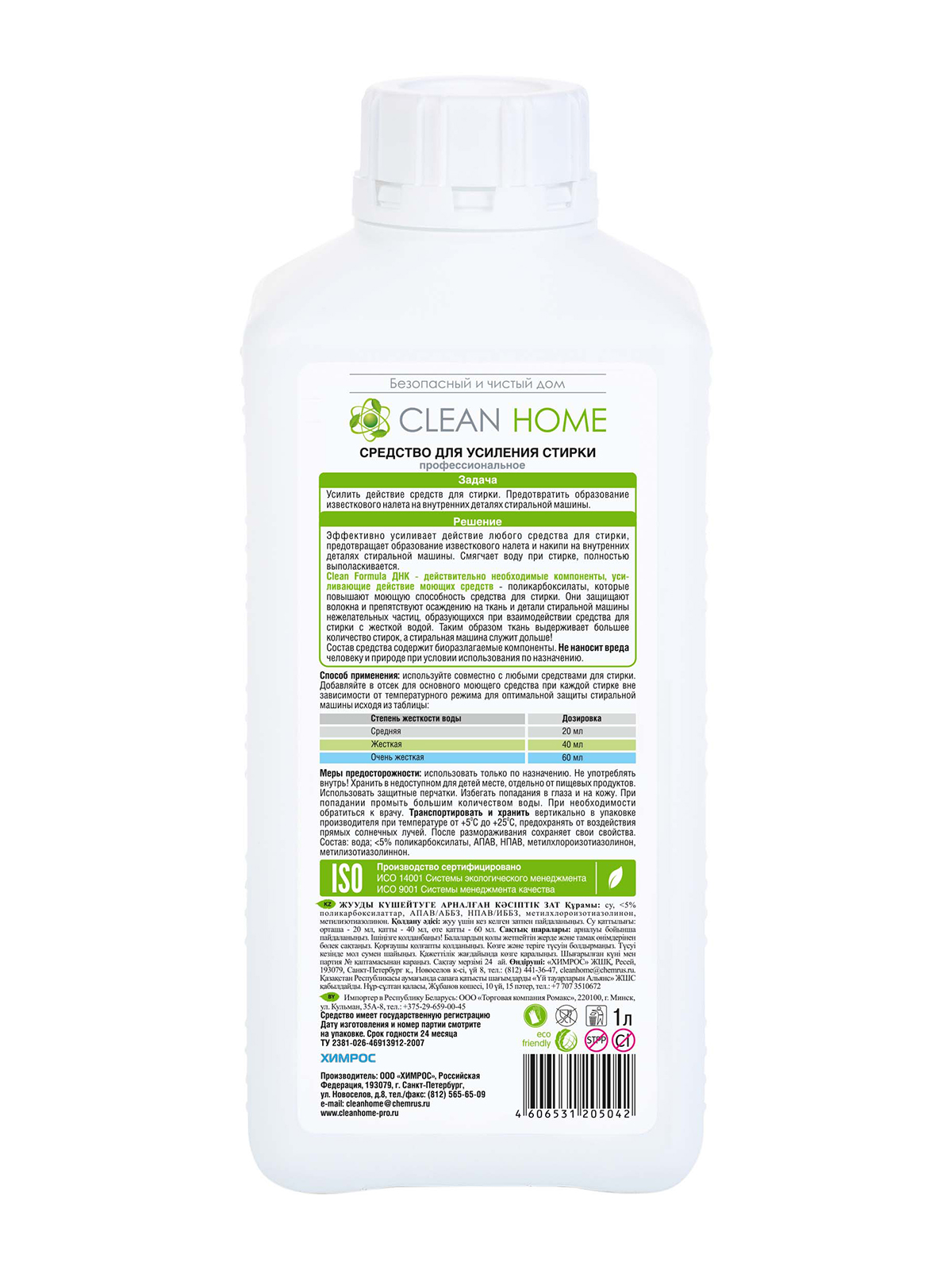 Средство для усиления стирки CLEAN HOME профессиональное 1л