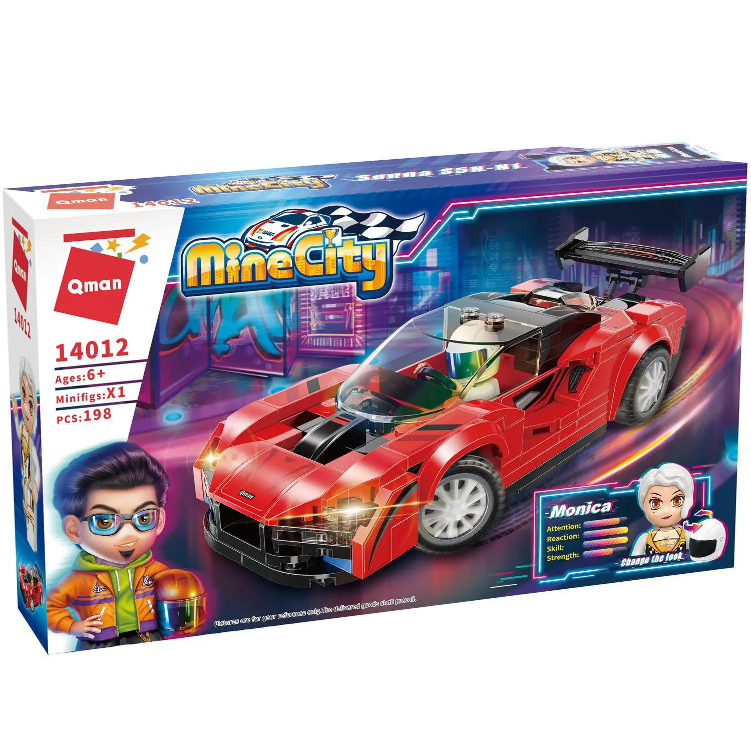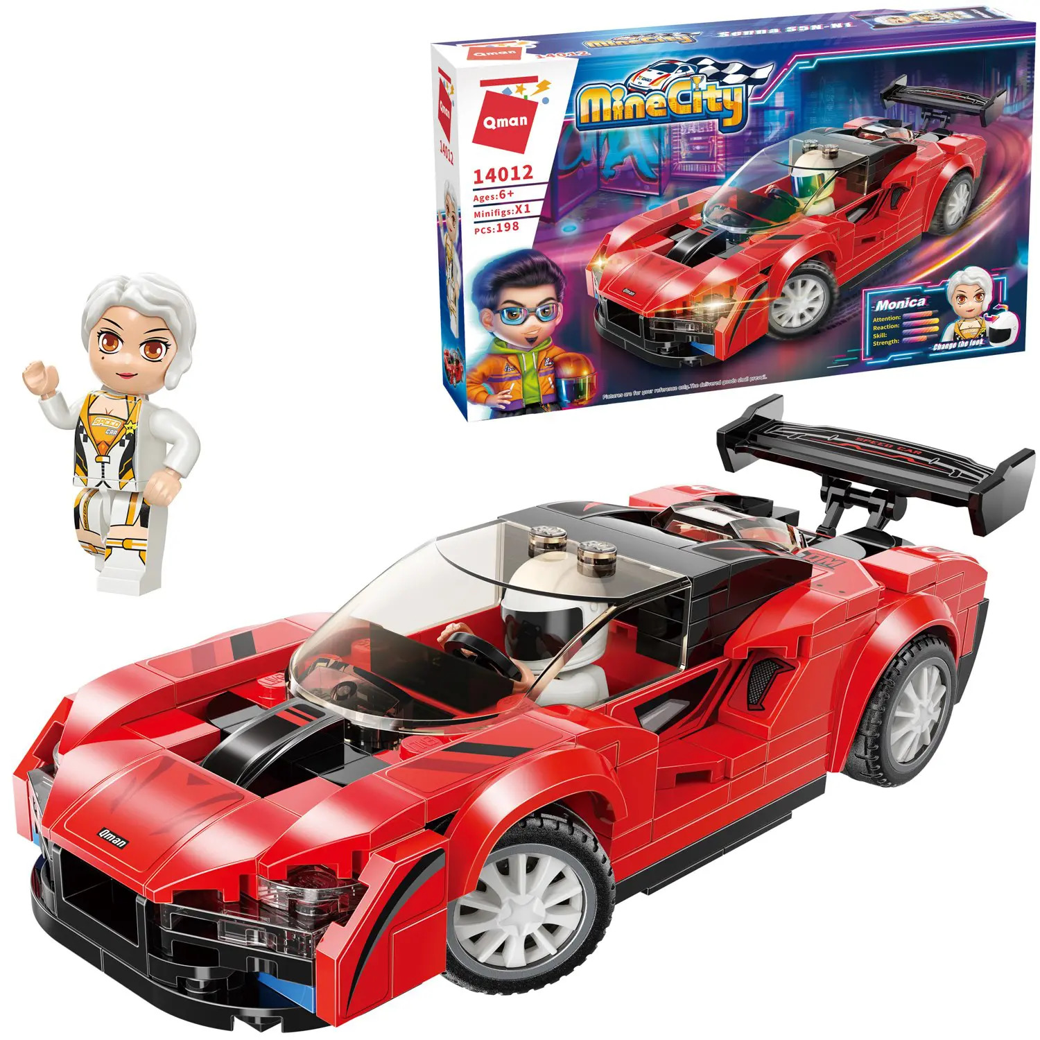 Конструктор QMAN из серии «MineCity» позволит ребенку собственными руками собрать ярко-красную спортивную машинку. За рулем автопилот Моника, которая очень хочет привезти ее к победе в заезде. Простое и надежное соединение деталей разных размеров и форм между собой обеспечат специальные крепления. Во время игры ребенок сможет задействовать свою фантазию и придумать интересные сценарии. В процессе сборки и игры с готовой моделью юный конструктор будет развивать мелкую моторику рук, пространственное мышление, внимательность и усидчивость.В набор включена 1 фигурка.