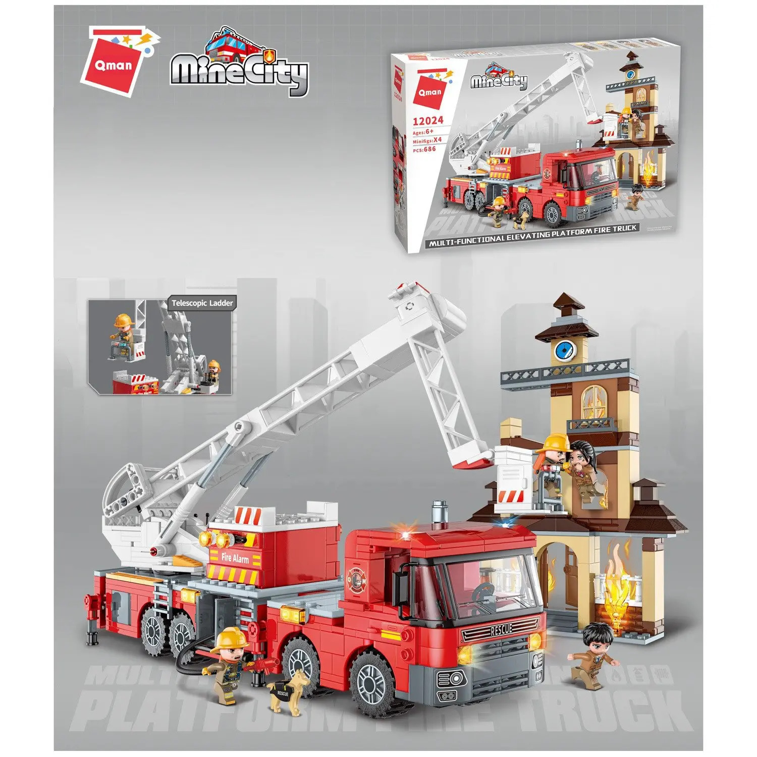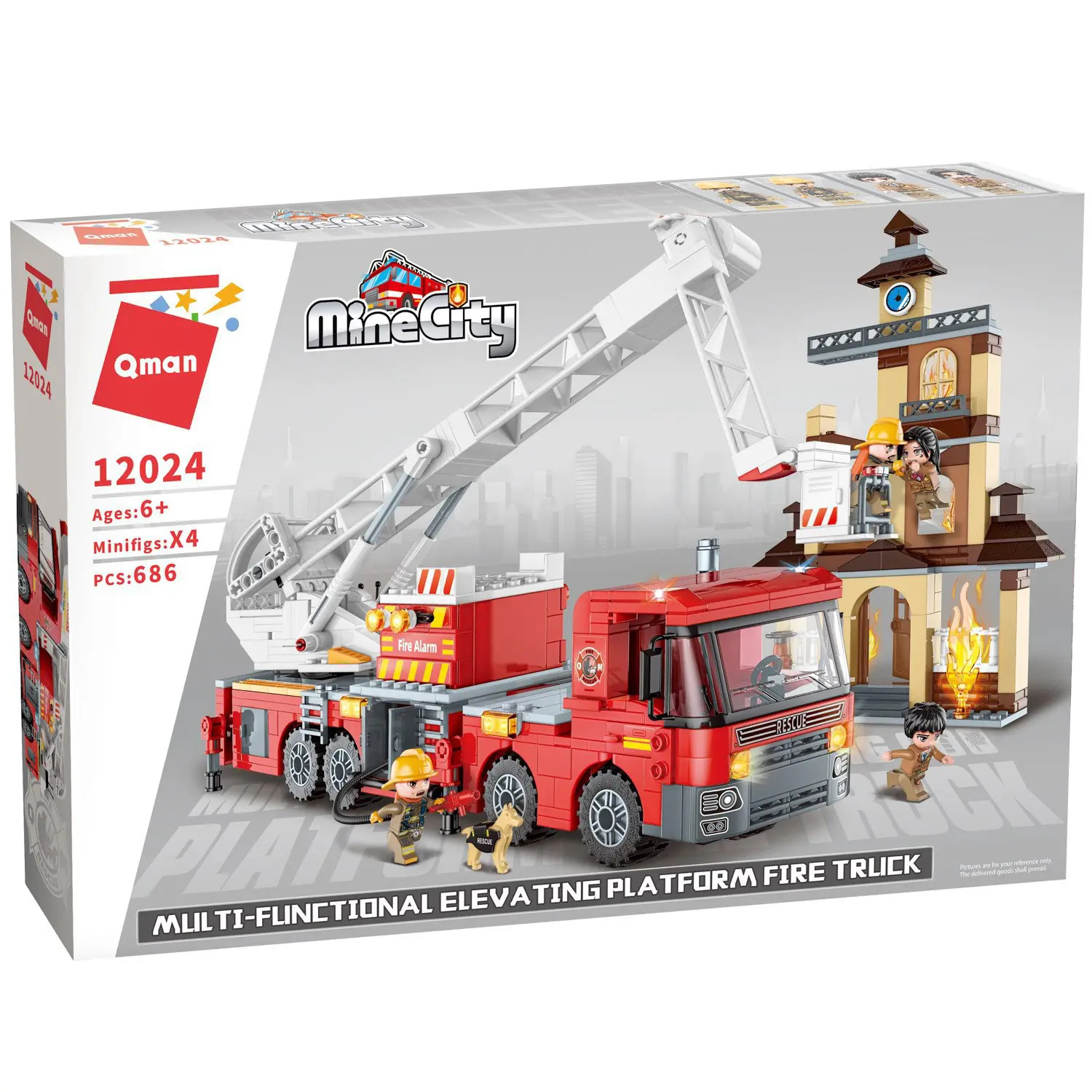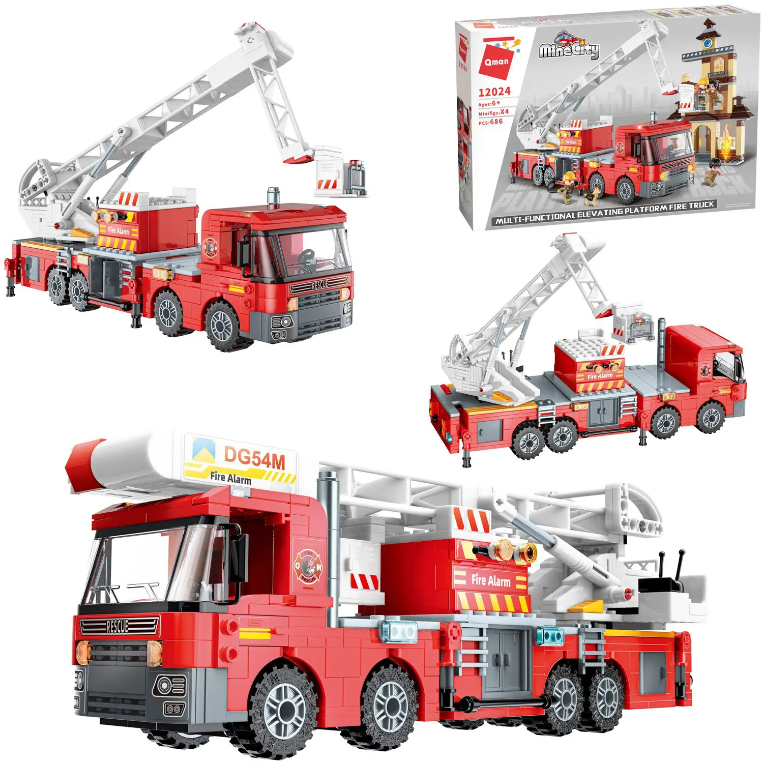 Конструктор Qman серия MineCity Пожарная машина: Тушение пожара в отеле, 686 деталей