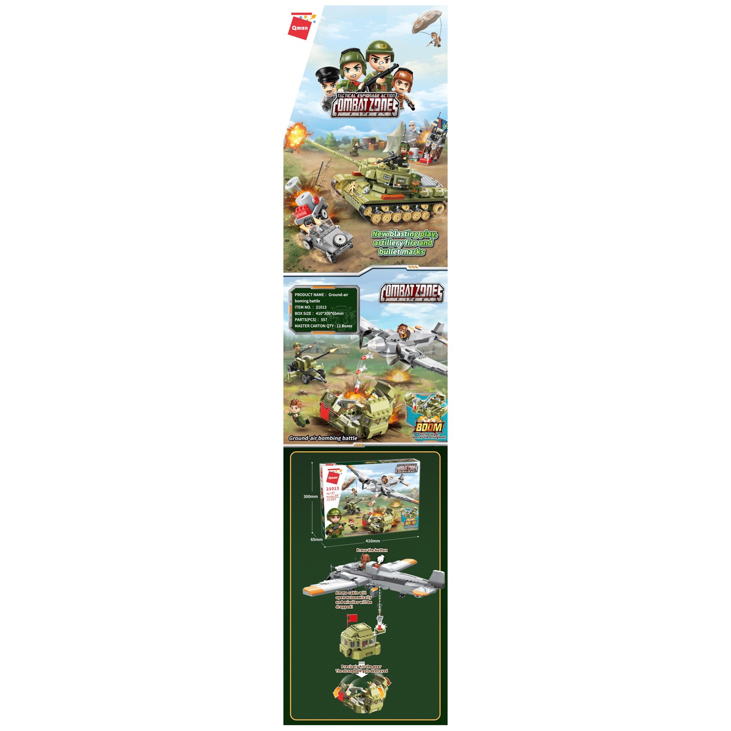 Конструктор Qman серия Combat Zone Вражеский воздушный налет 557 деталей