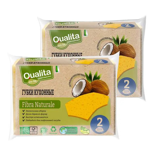 QUALITA Губки для мытья посуды FIBRA NATURALE Eco life 2шт 2шт