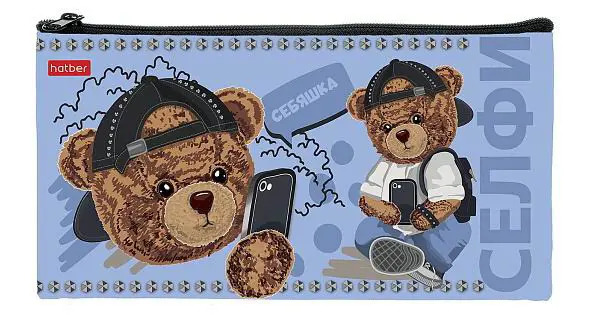 Пенал Hatber Мишка_SELFIE 205х110мм на молнии