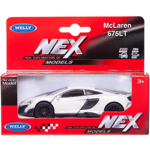 Игрушка- Welly,die cast модель машины McLAREN 675LT COUPE с пружинным механизмом (pull back), масштаб 1:38, металлическая с пласт элементами