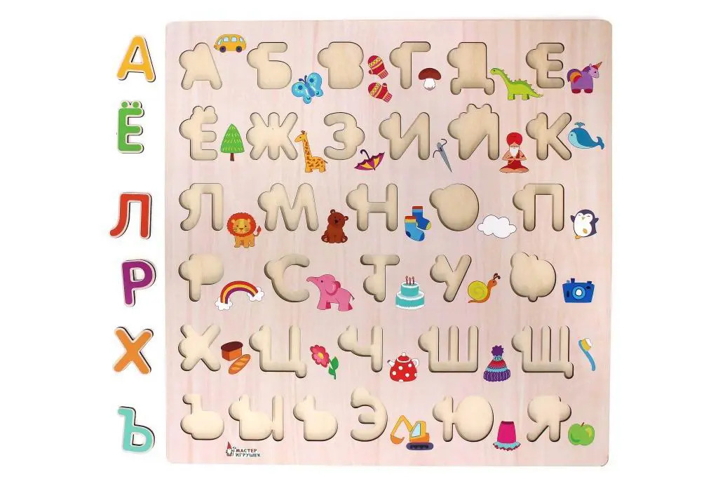 Покажите ребенку, как играть – составьте буквы в правильном порядке и попросите малыша запомнить расположение букв. Обязательно называйте буквы вслух, чтобы ребенок запоминал их названия.