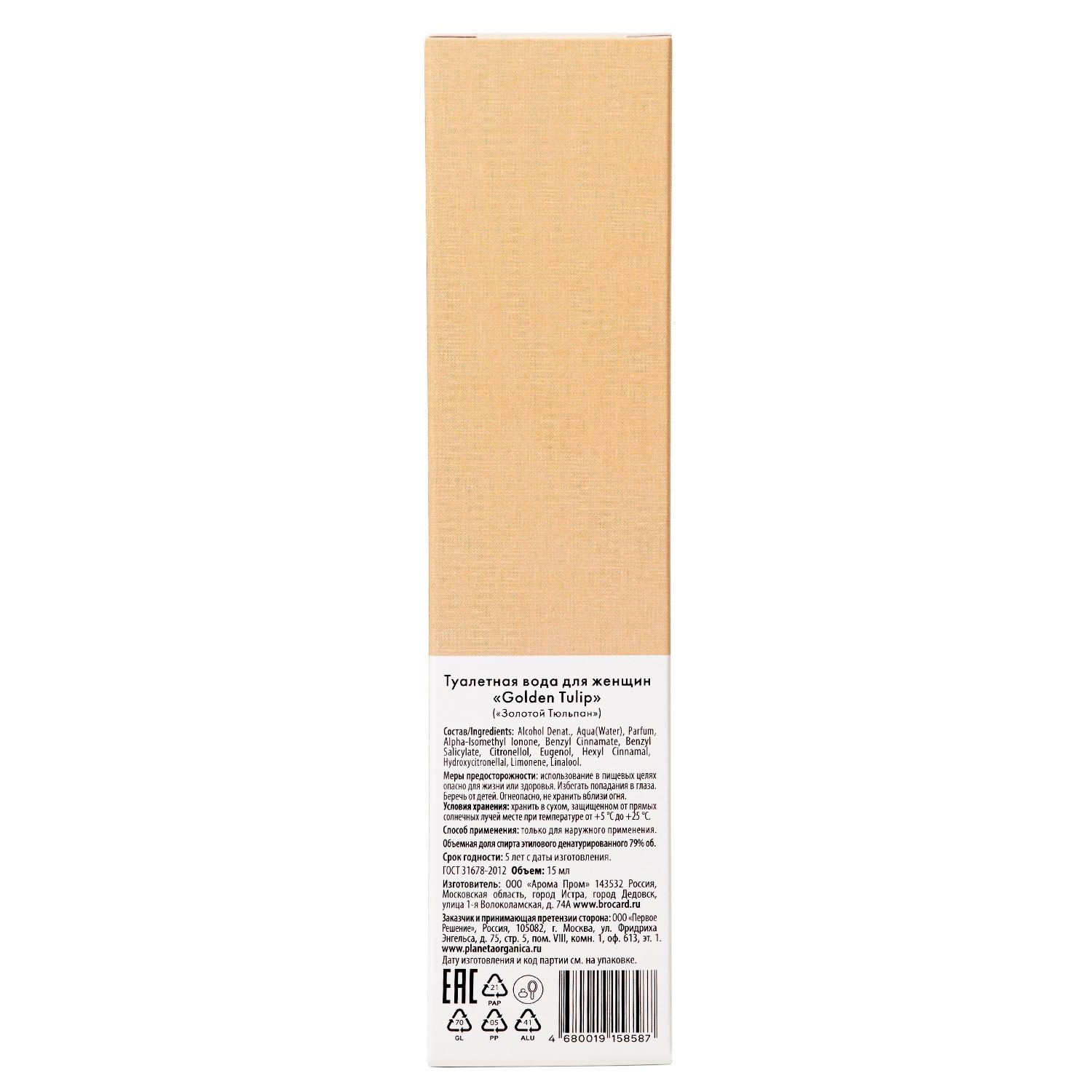 Туалетная вода для женщин Planeta Organica "Golden Tulip" («Золотой Тюльпан») , 15 мл