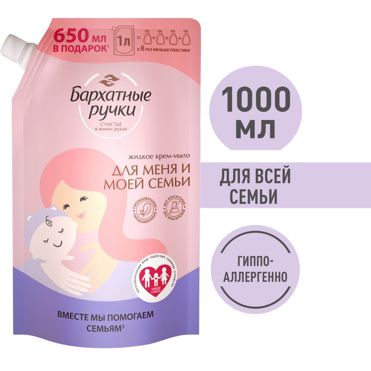 Бархатные Ручки Крем для рук лица и тела Универсальный для Всей Семьи 1000мл