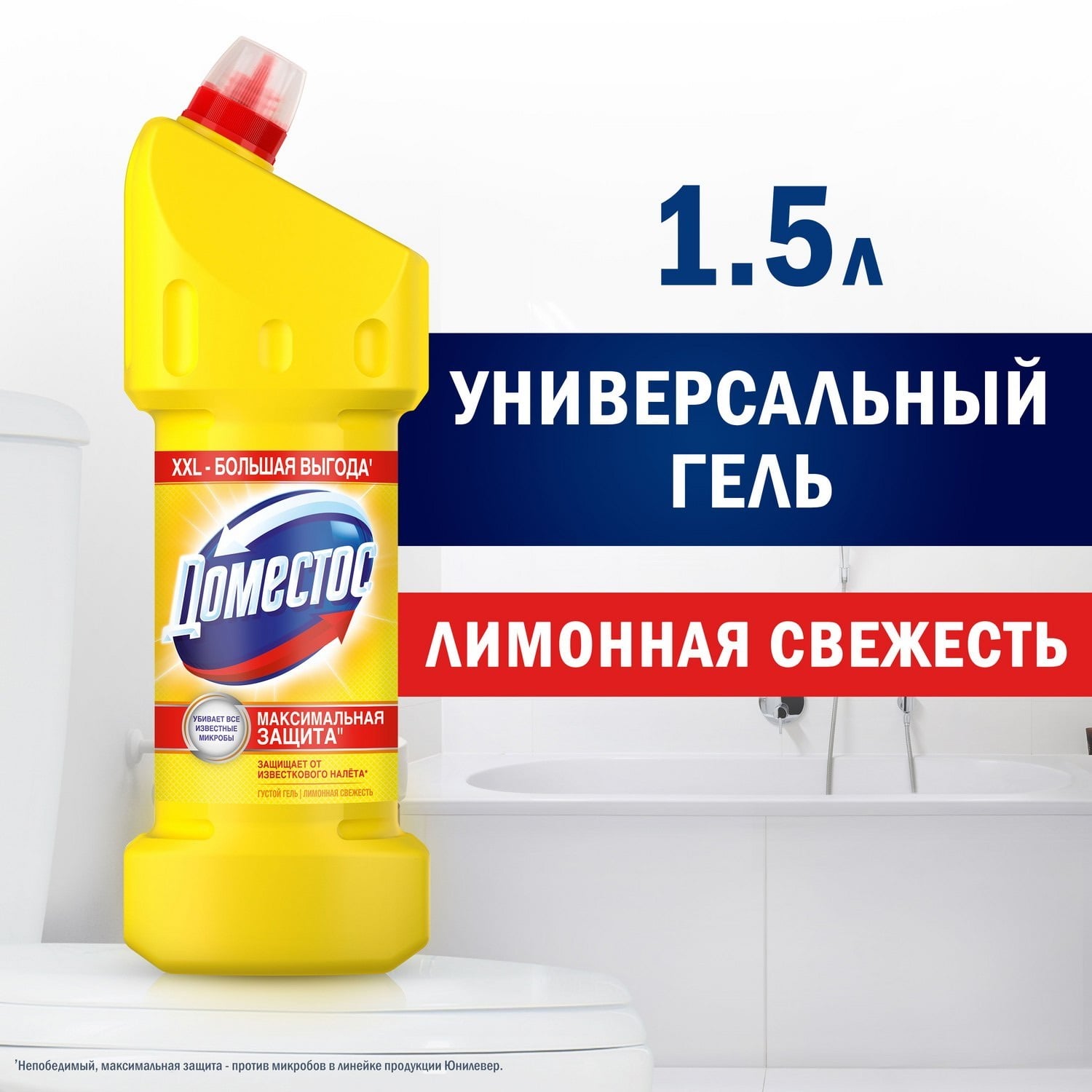 Чистящий гель для унитаза Доместос Лимонная Свежесть помогает обеспечивать в доме блестящую чистоту и защиту от микробов надолго.Доместос Лимонная Свежесть — это густое и экономичное средство, которое имеет гелевую текстуру и помогает устранять неприятные запахи, бактерии, грибки, вирусы и споры во всем доме.