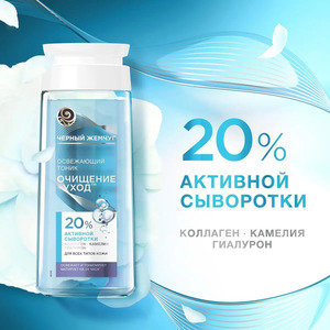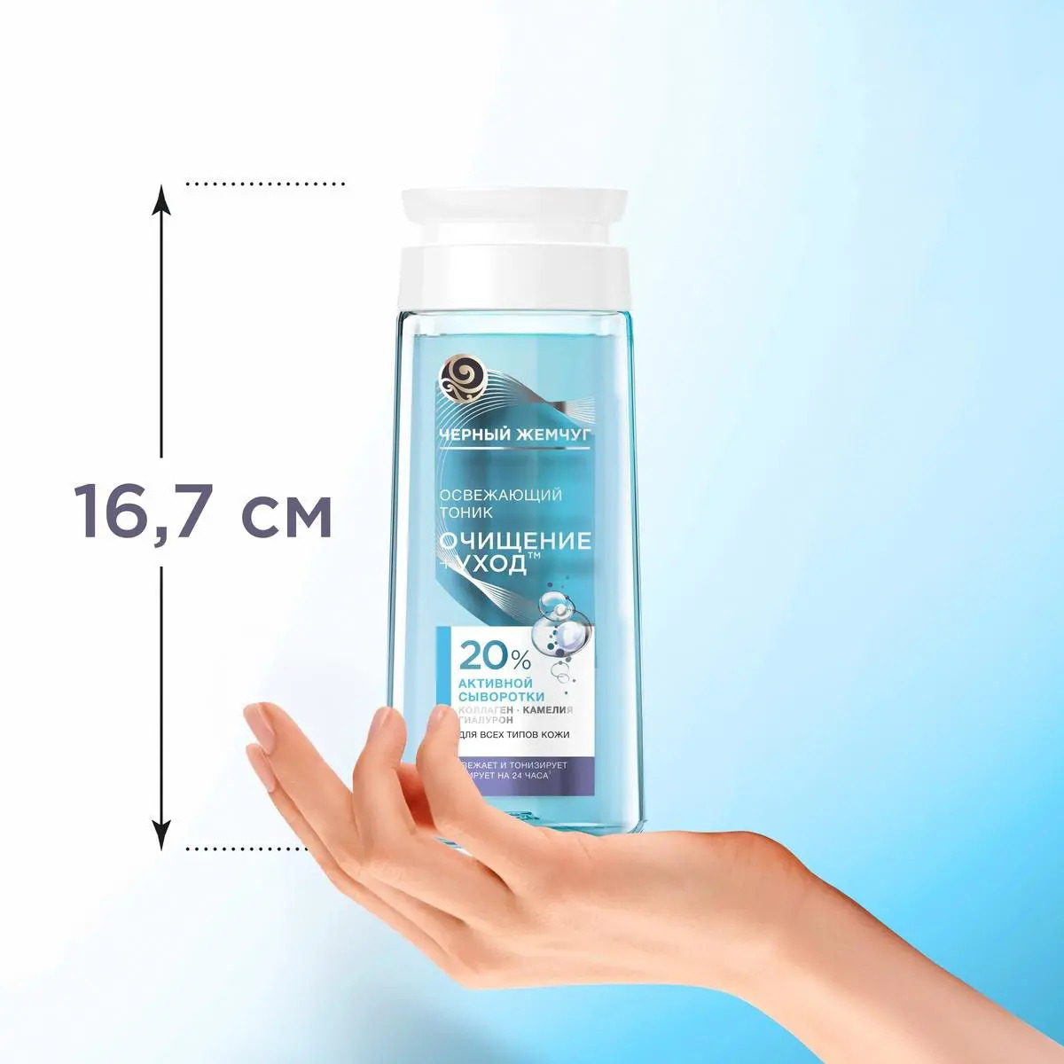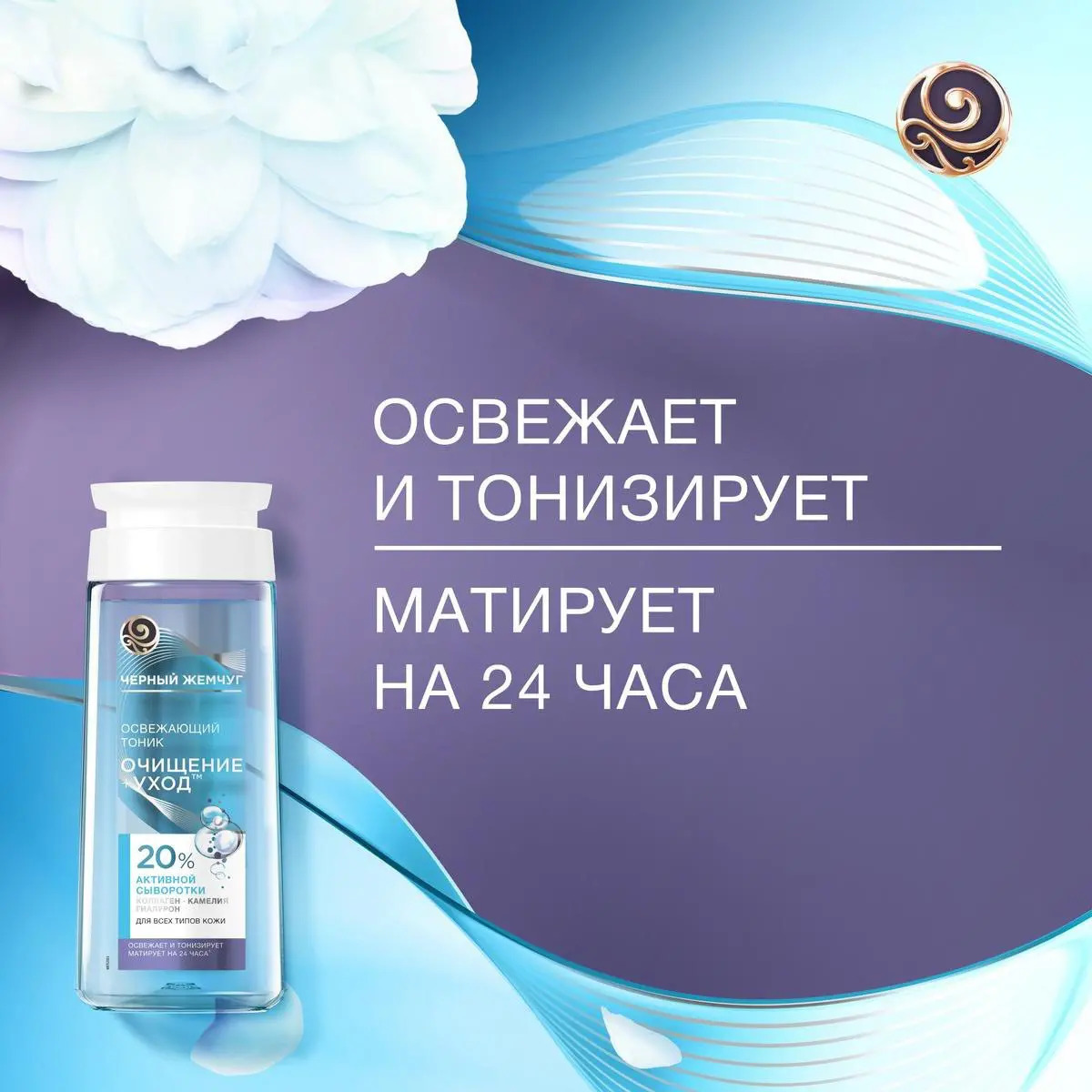 Освежающий тоник для лица Черный Жемчуг Очищение и уход — это новый стандарт очищения* от экспертов бренда Черный Жемчуг. Средство для очищения лица освежает и тонизирует кожу, а также придает ей матовость на 24 часа**. При этом увлажняющий тоник оставляет ощущение комфорта и не стягивает кожу. Подходит для всех типов кожи лица.Ухаживающий тоник для кожи лица Черный Жемчуг Очищение и уход содержит: