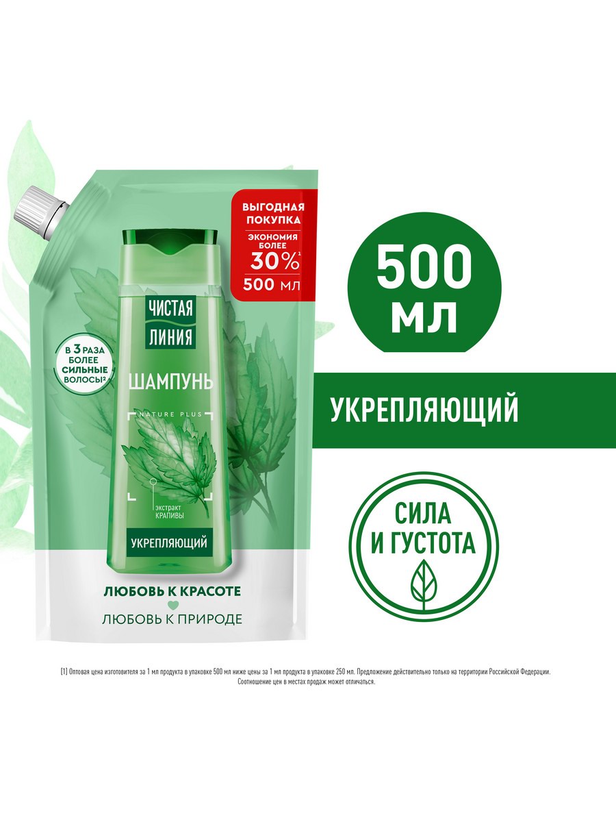 Чистая Линия Nature Plus Шампунь Сила и густота укрепляющий для всех типов волос Рф 500мл