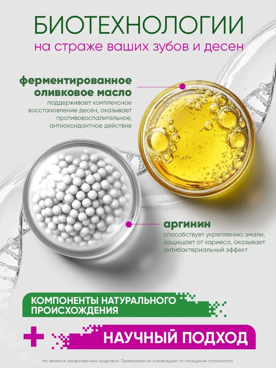 - Формула усилена гидроксиапатитом (источник кальция), который заполняет поврежденные участки эмали, восстанавливая естественный блеск зубов.