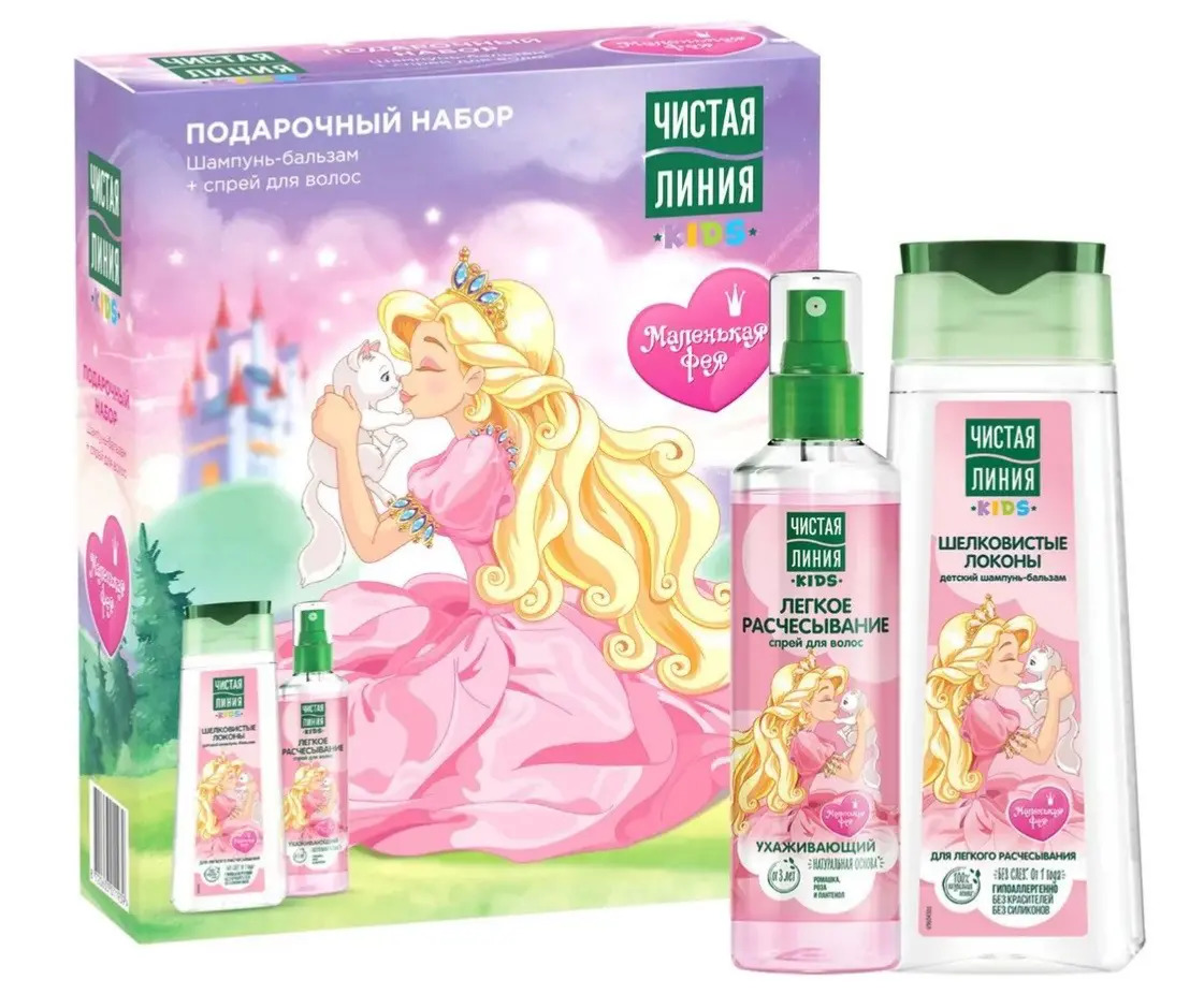 Подарок, который порадует маму и дочку – набор Шелковистые локоны от бренда Чистая Линия!Эксперты бренда Чистая Линия разработали шампунь-бальзам Шелковистые локоны для детей от 1 года. 100% натуральная основа с природным бальзамом нежно и качественно очищает волосы, придает им шелковистость и естественный блеск, облегчает расчесывание. Идеален для волос, склонных к спутыванию. Шампунь гипоаллергенный, не содержит красителей и силиконов.
