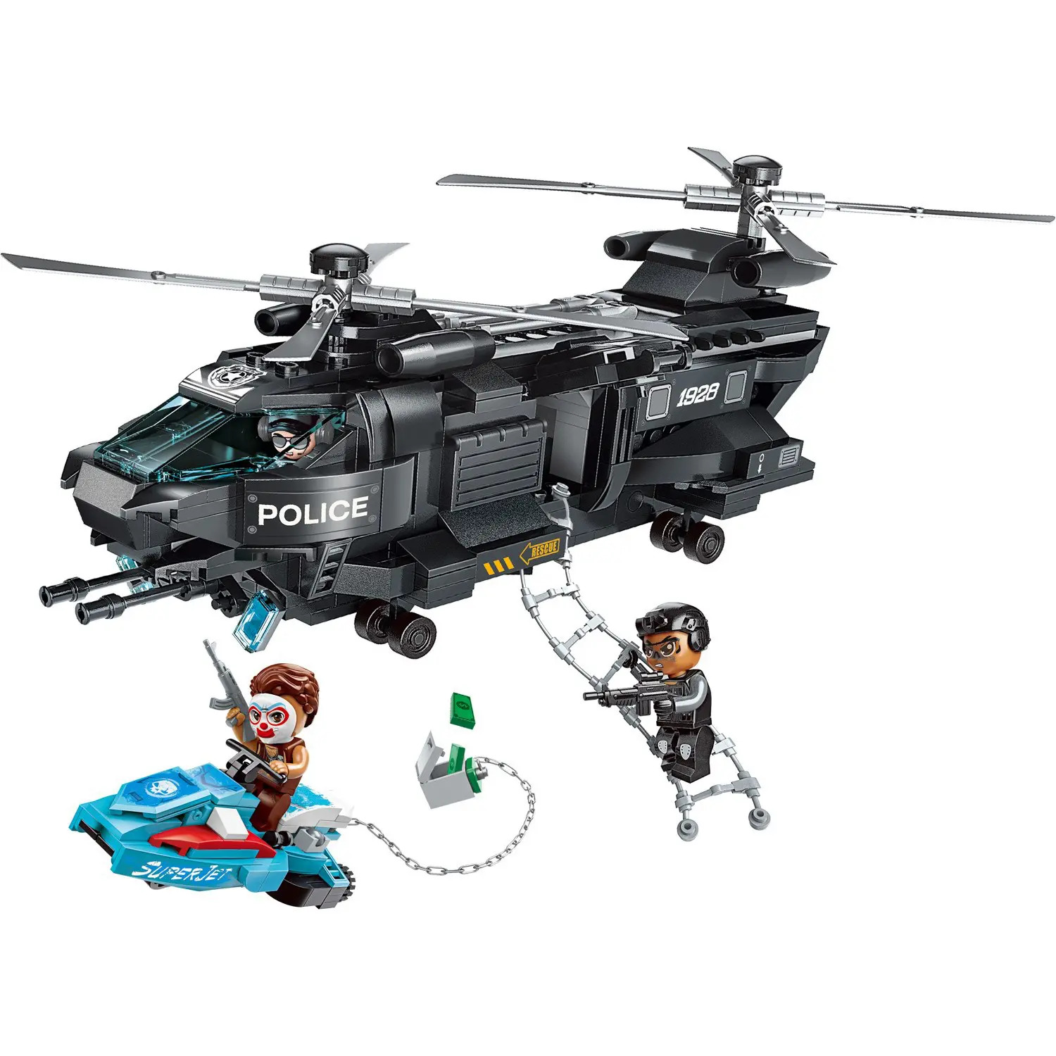 Конструктор Qman серия MineCity Полицейский вертолет преследует преступника 473 детали