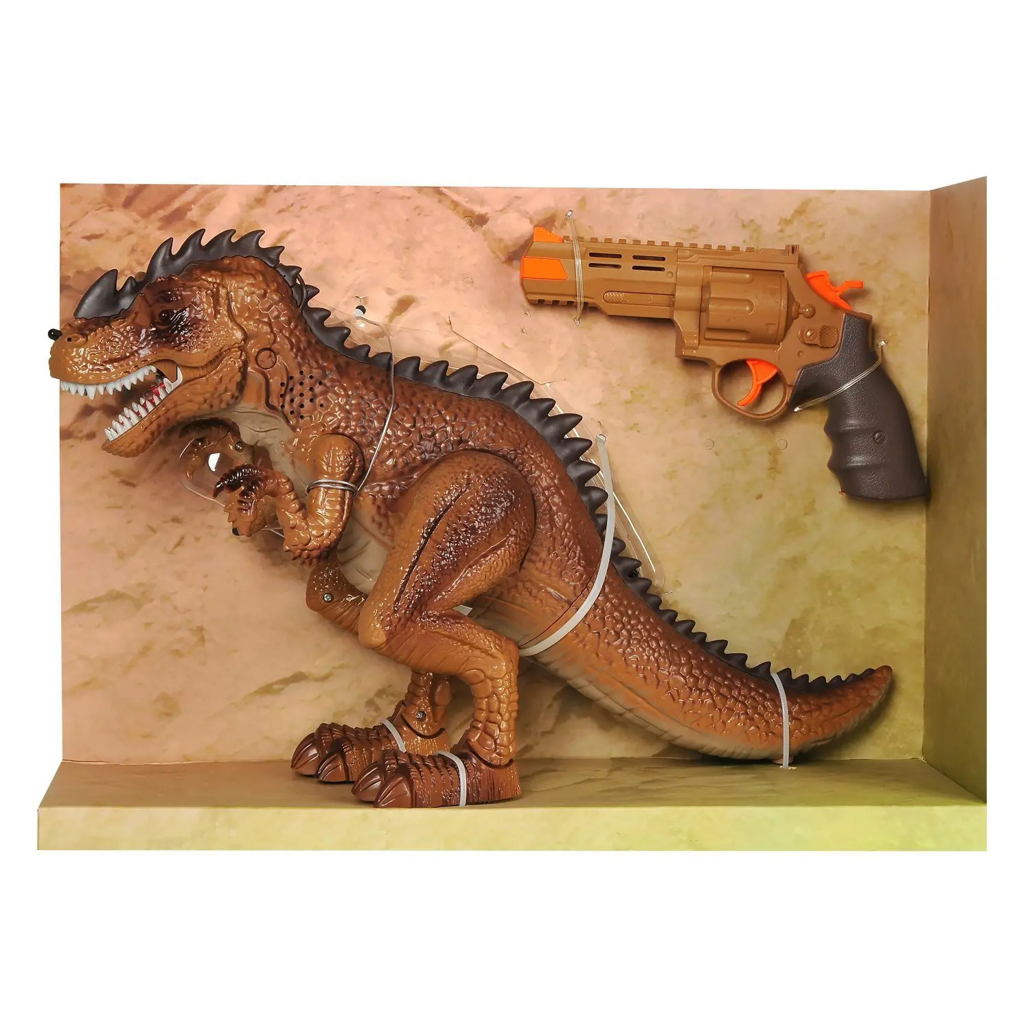 Игровой набор Junfa Охота на динозавра (Тираннозавр и пистолет), на ИК управлении, коричневый, на батарейках