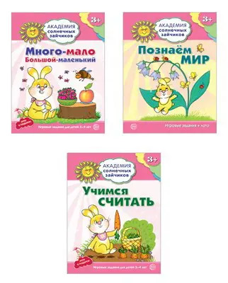 Комплект состоит из:1. Академия солнечных зайчиков. 3-4 года. МНОГО-МАЛО, БОЛЬШОЙ-МАЛЕНЬКИЙ (Развив.задания и игра) ФГОС ДО