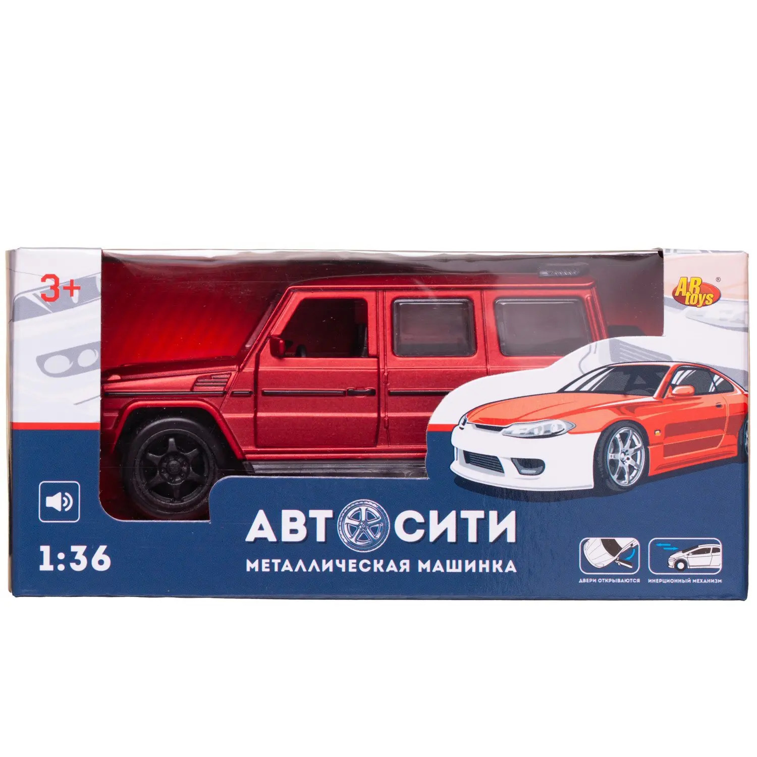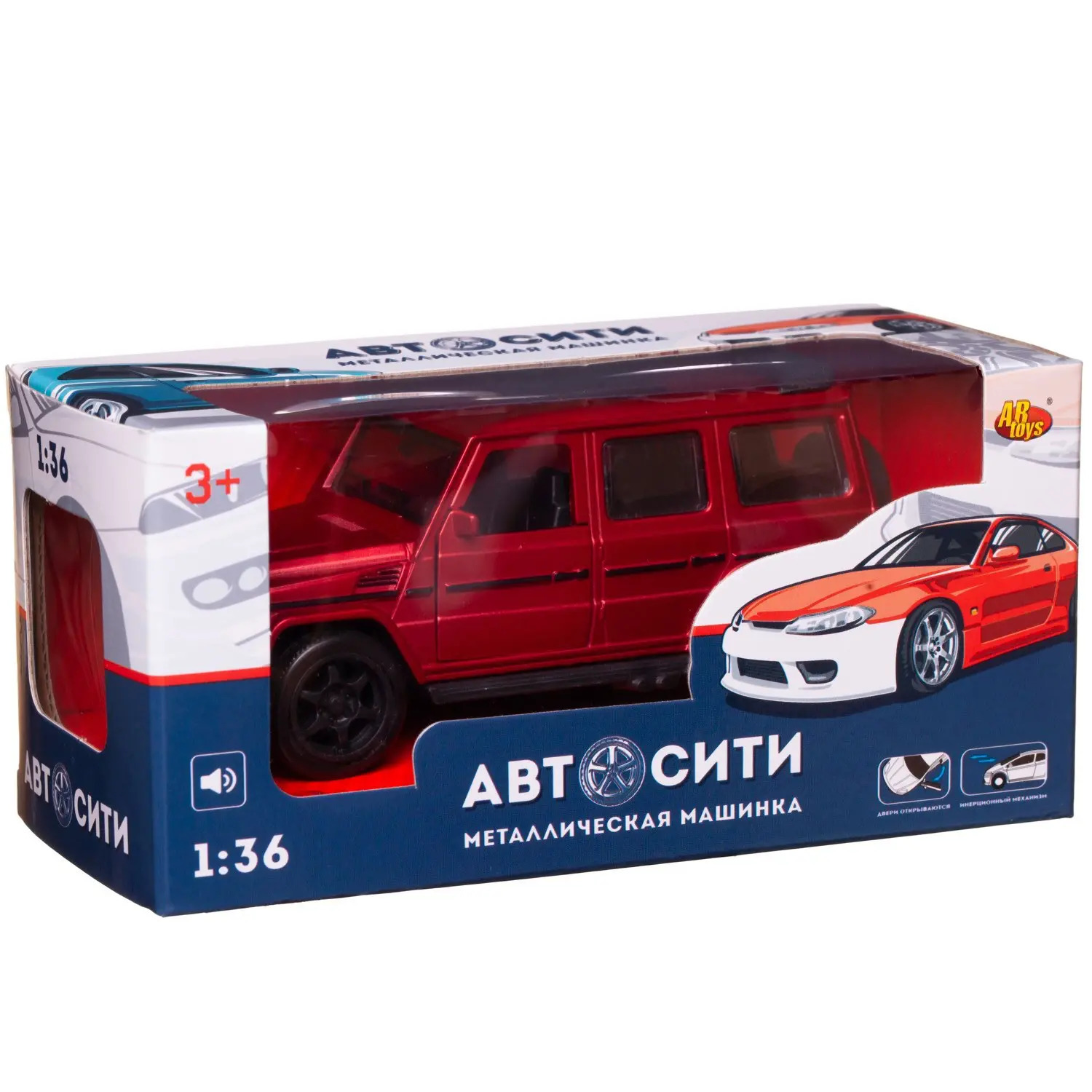 Машинка металлическая Abtoys АвтоСити 1:36 Внедорожник классический инерционный с открывающими передними дверцами красный свет звук