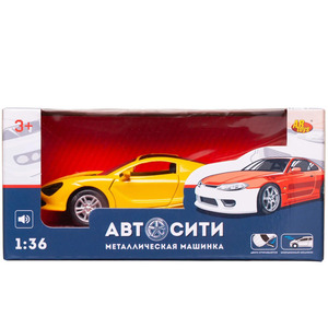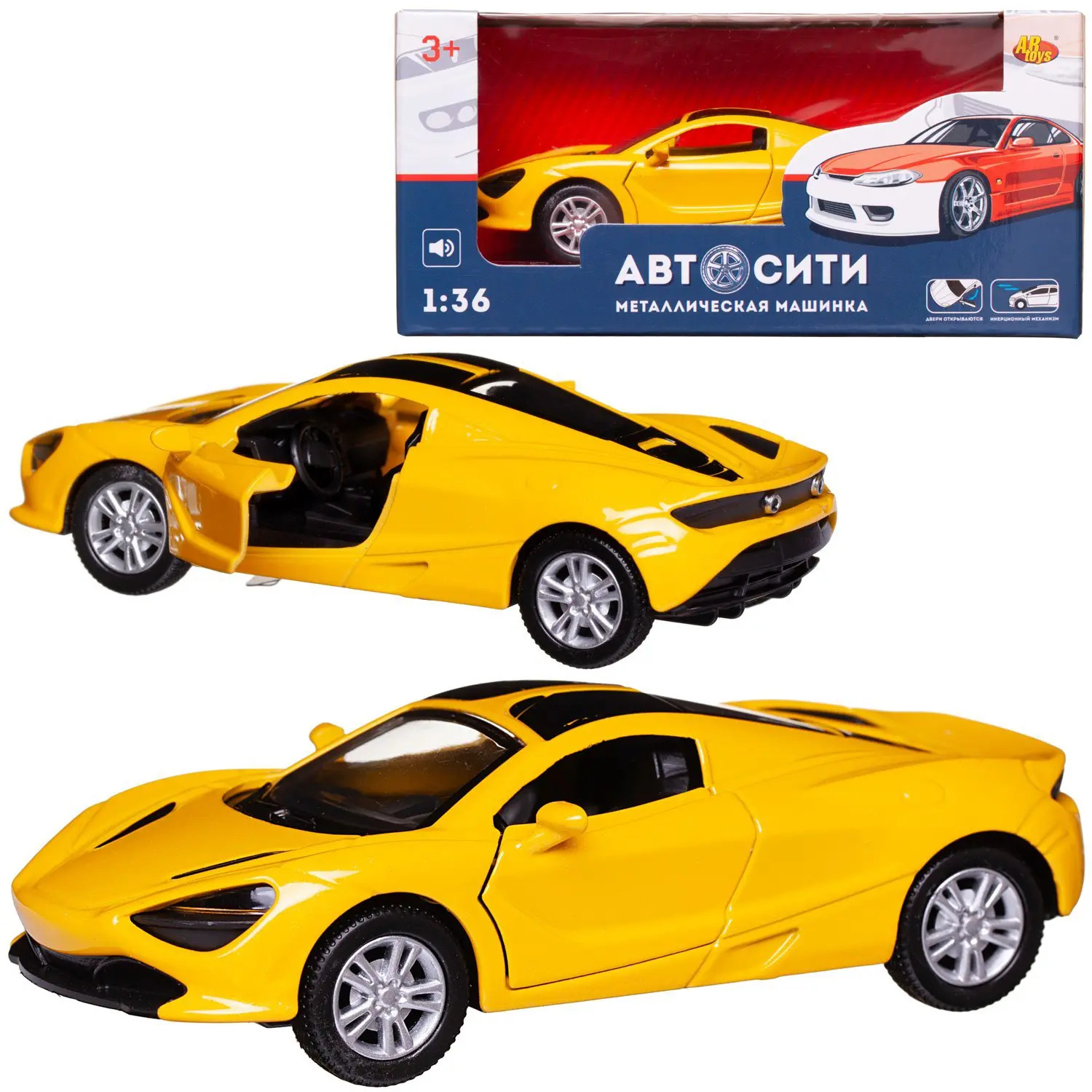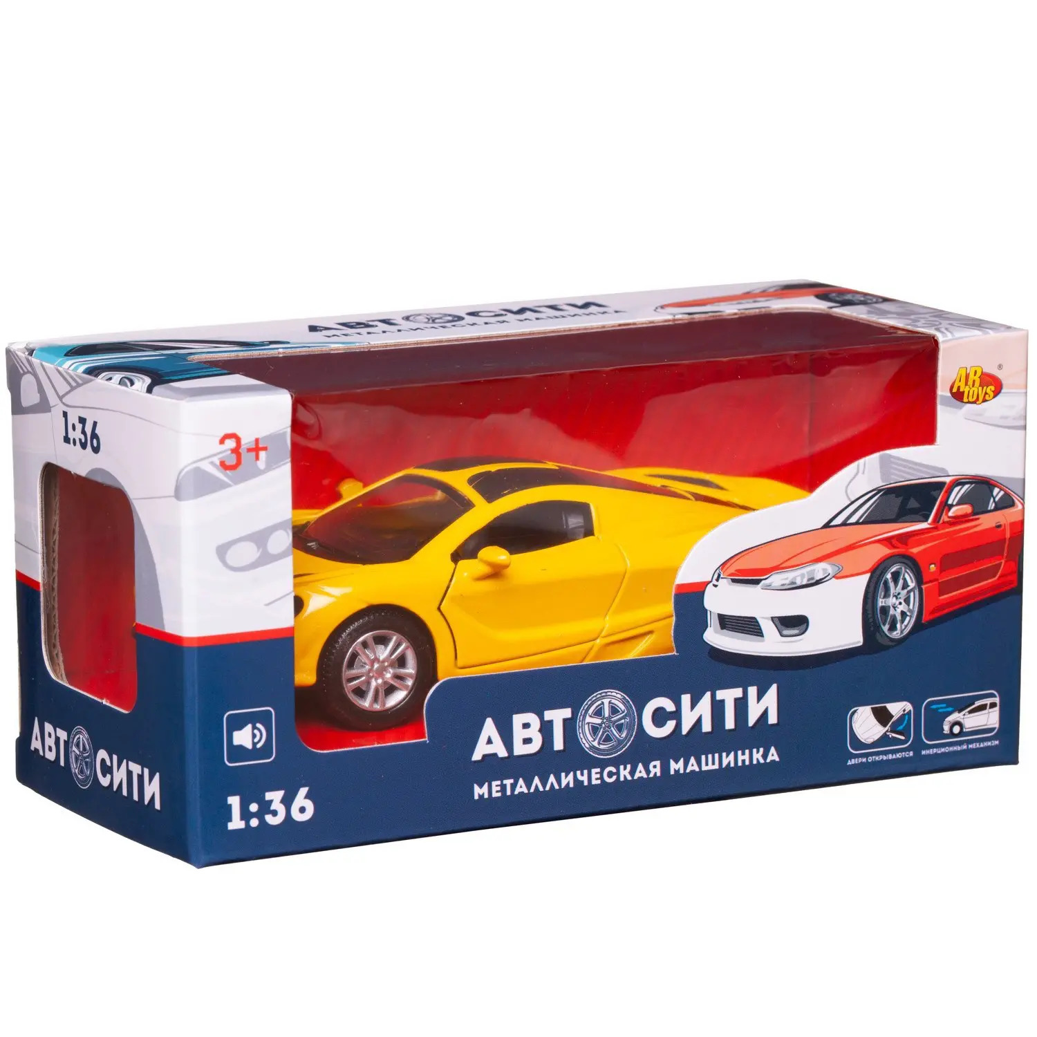 Машинка металлическая Abtoys АвтоСити 1:36 Спортивная инерционная с открывающими передними дверцами желтая свет звук
