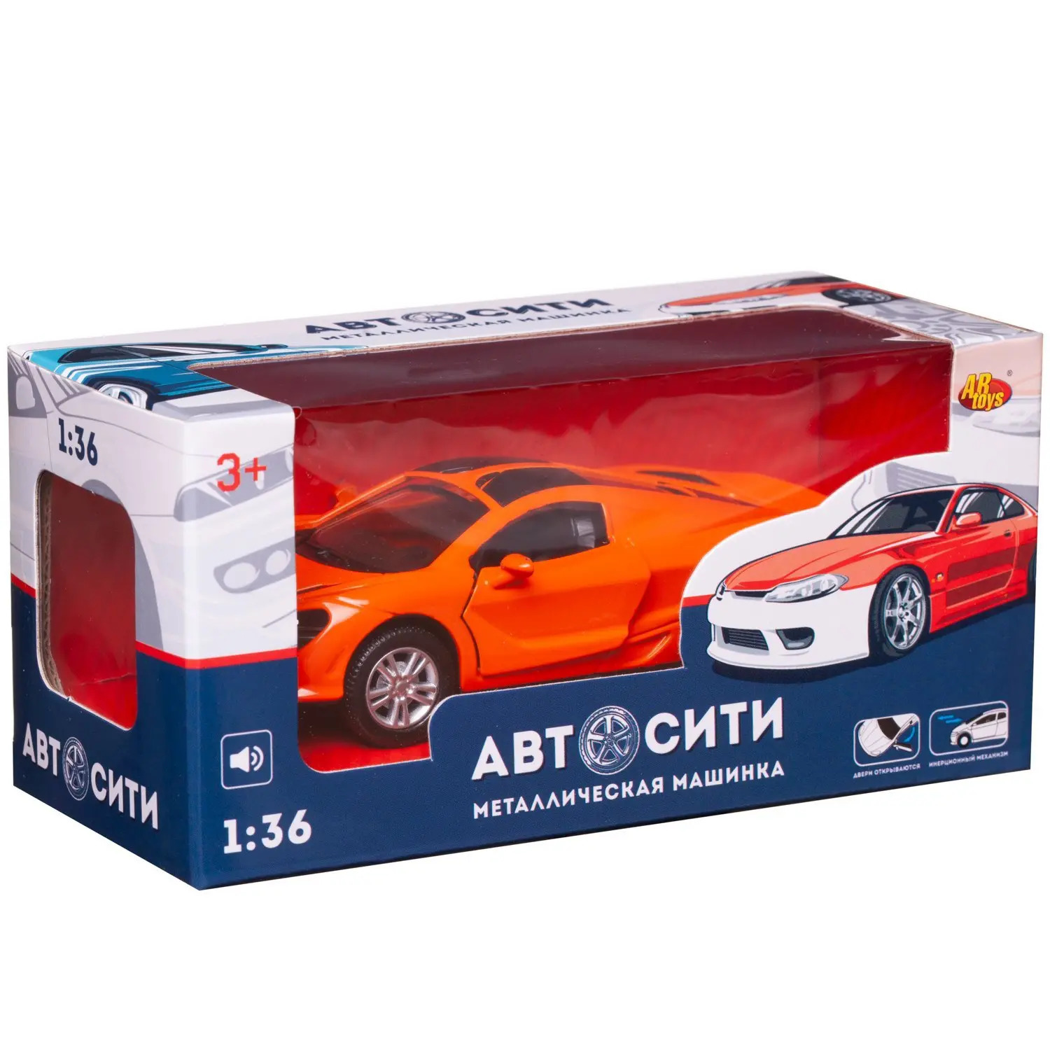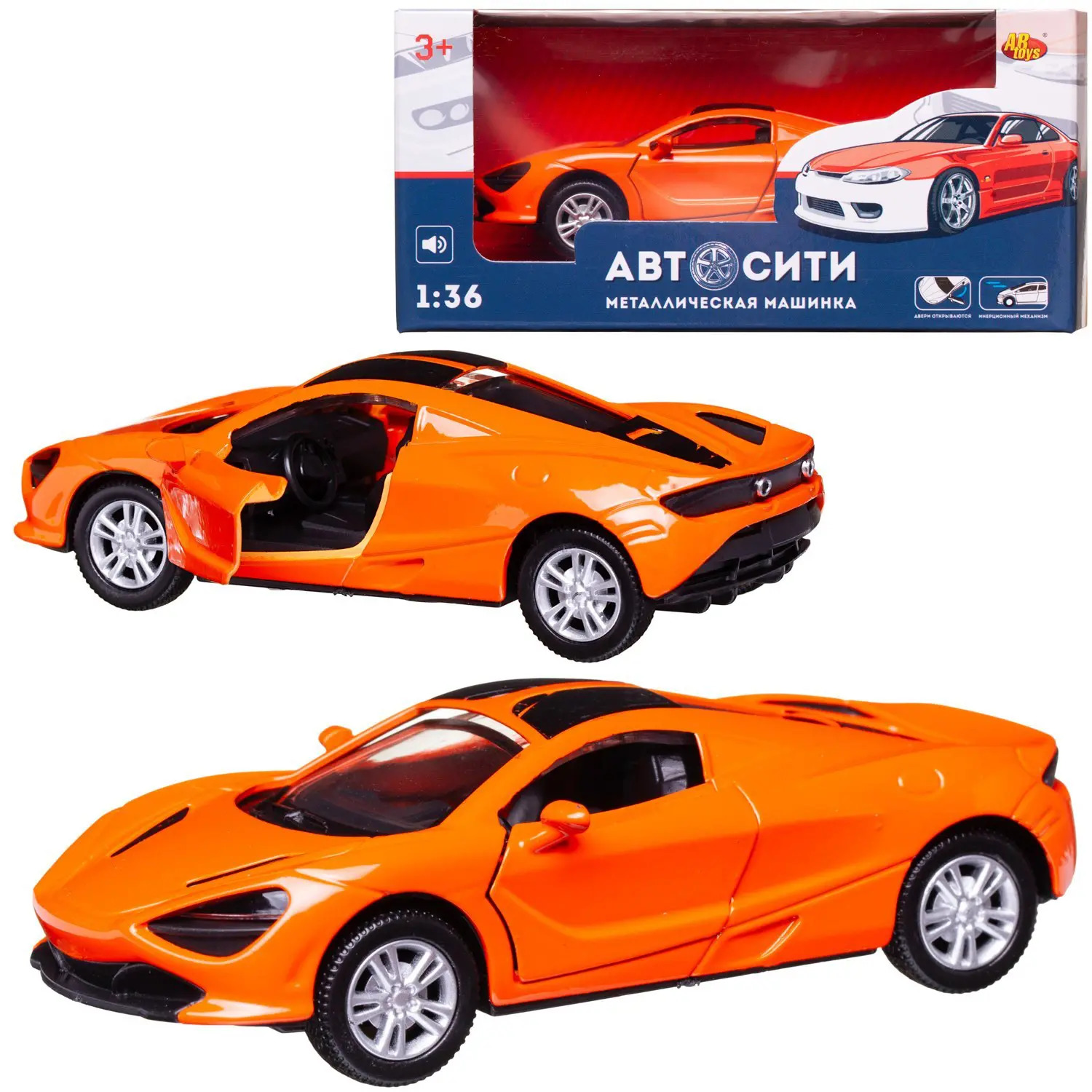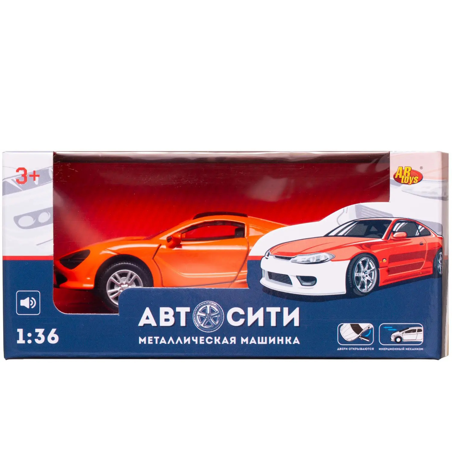 Машинка металлическая Abtoys АвтоСити 1:36 Спортивная инерционная с открывающими передними дверцами оранжевая свет звук