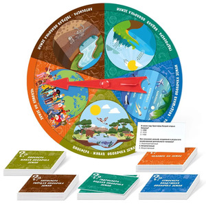 Игра настольная Викторина "География". Состав игры: картонное игровое поле со стрелкой (20х20 см) – 1 шт;карточки (6,5х4,5 см) – 75 шт. Материалы: картон, полимерный материал.Игра рассчитана на 2-4 участников и предназначена для детей и взрослых в возрасте старше 10 лет.