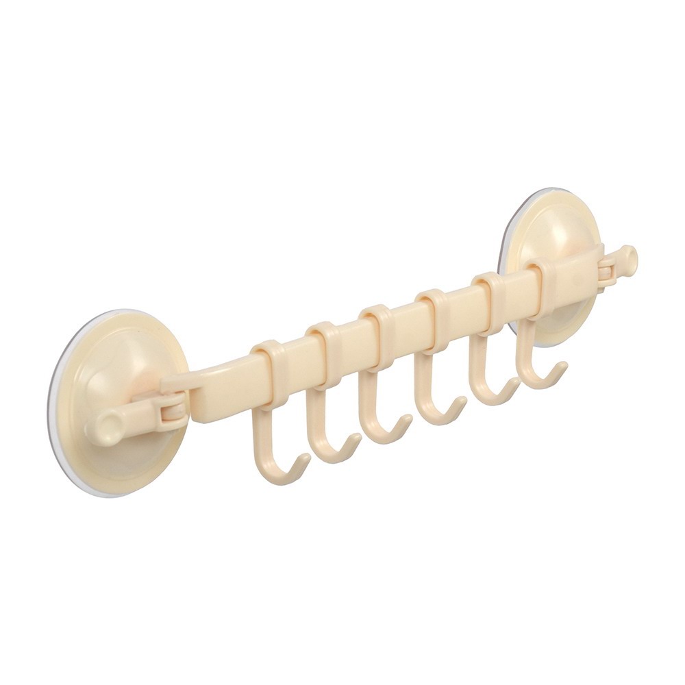 Держатель регулируемый подвесной на присосках, пластик, 6 крючков, 33*7 см, бежевый MARMITON