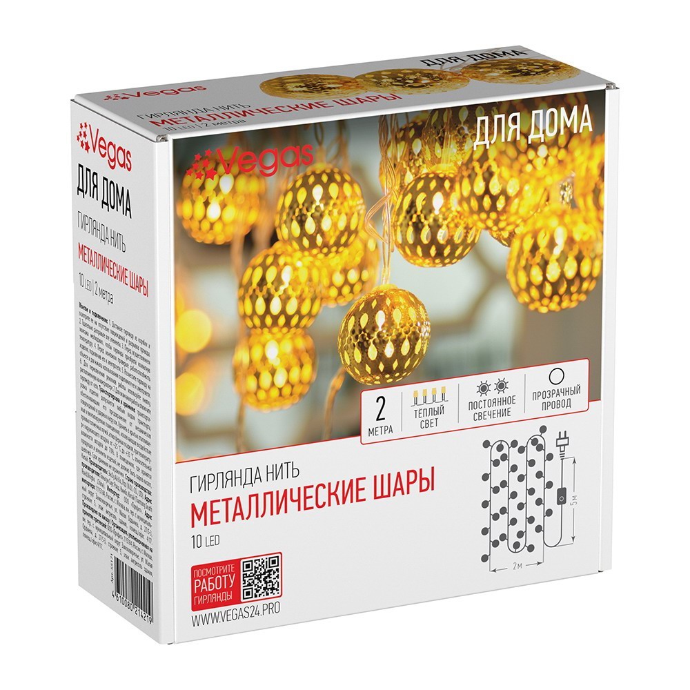 Электрогирлянда VEGAS Нить Металлические шары 10 теплых LED ламп