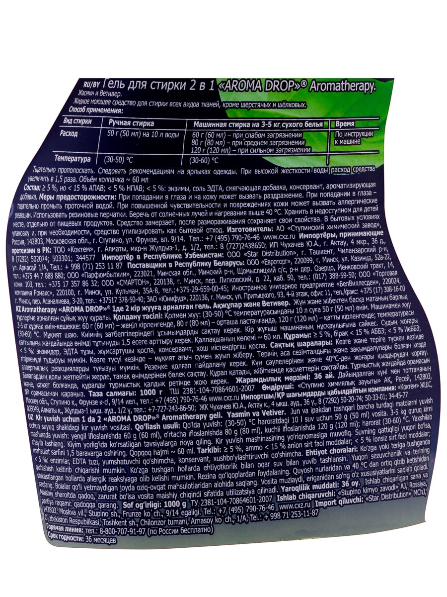 AROMA DROP Гель для стирки+кондиционер Aromatherapy Жасмин и Ветивер 1000 г