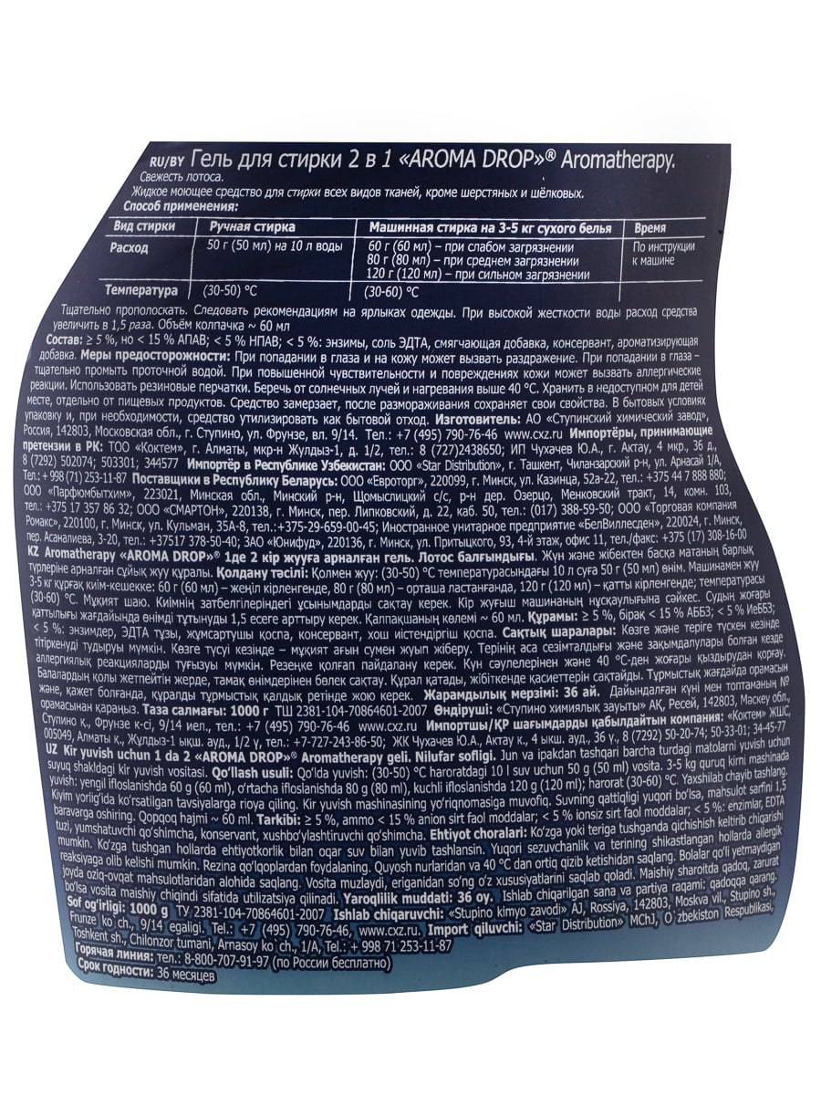 AROMA DROP Гель для стирки+кондиционер Aromatherapy Свежесть лотоса 1000 г