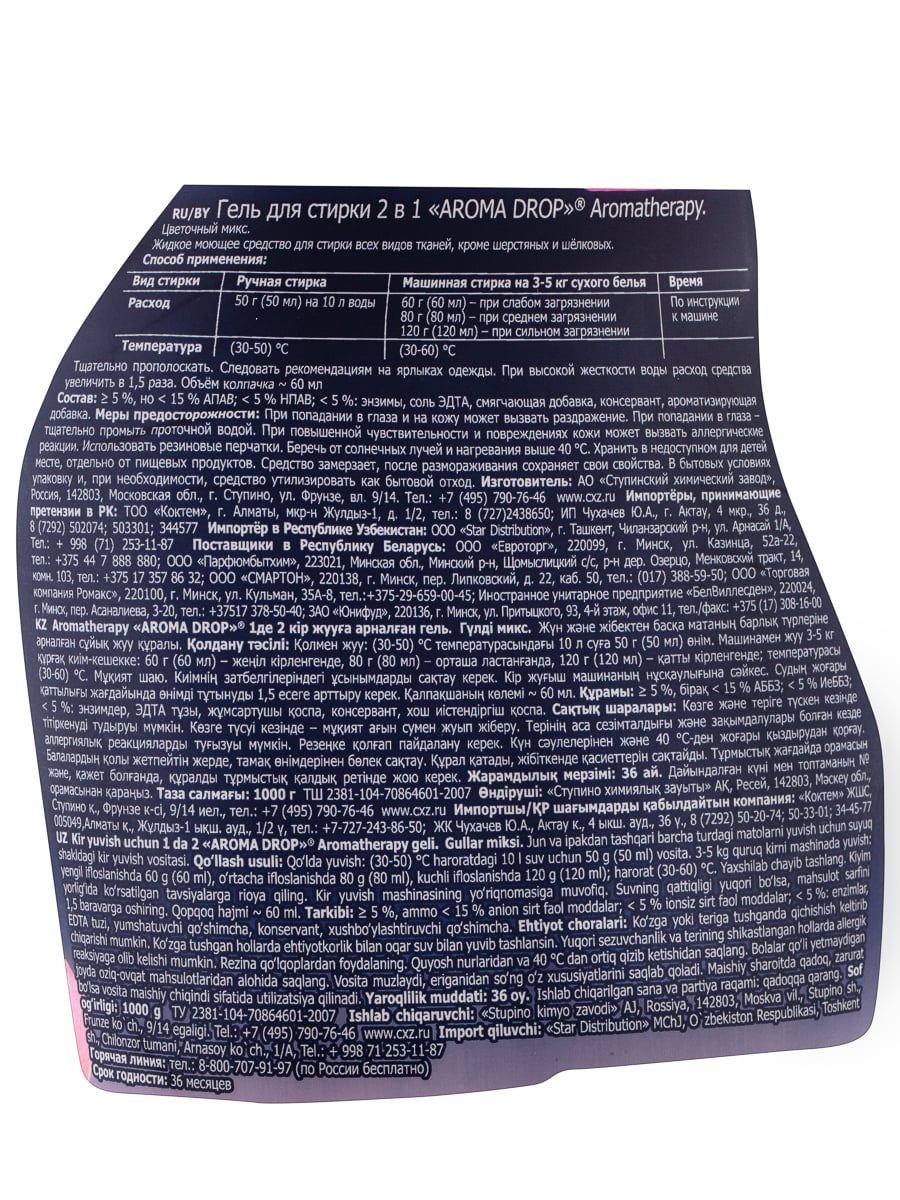 AROMA DROP Гель для стирки+кондиционер Aromatherapy Цветочный микс 1000 г
