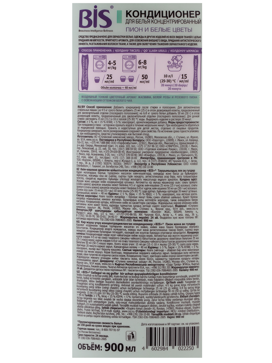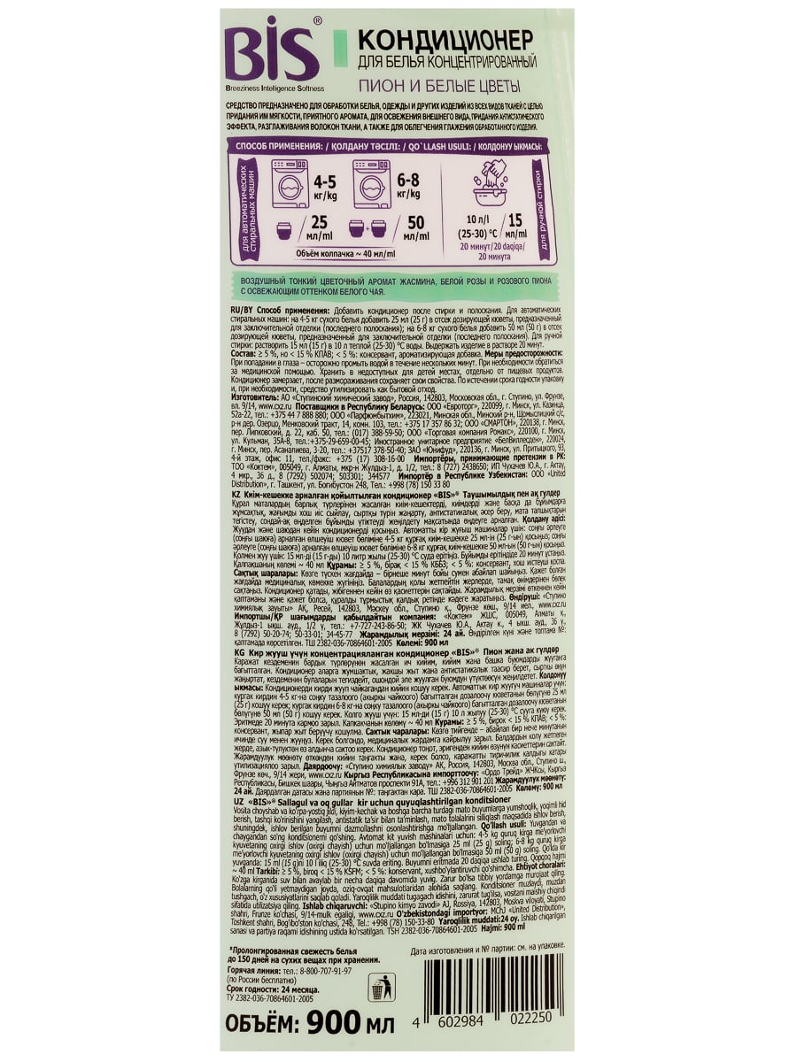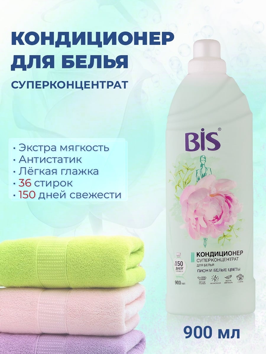 BIS Кондиционер для белья Пион и белые цветы суперконцентрат 900мл