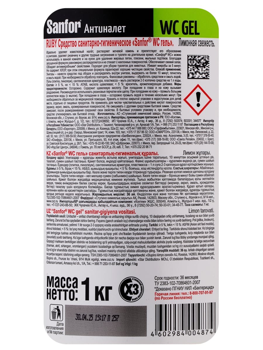Sanfor WС Гель Средство санитарно-гигиеническое Лимонная свежесть 1кг