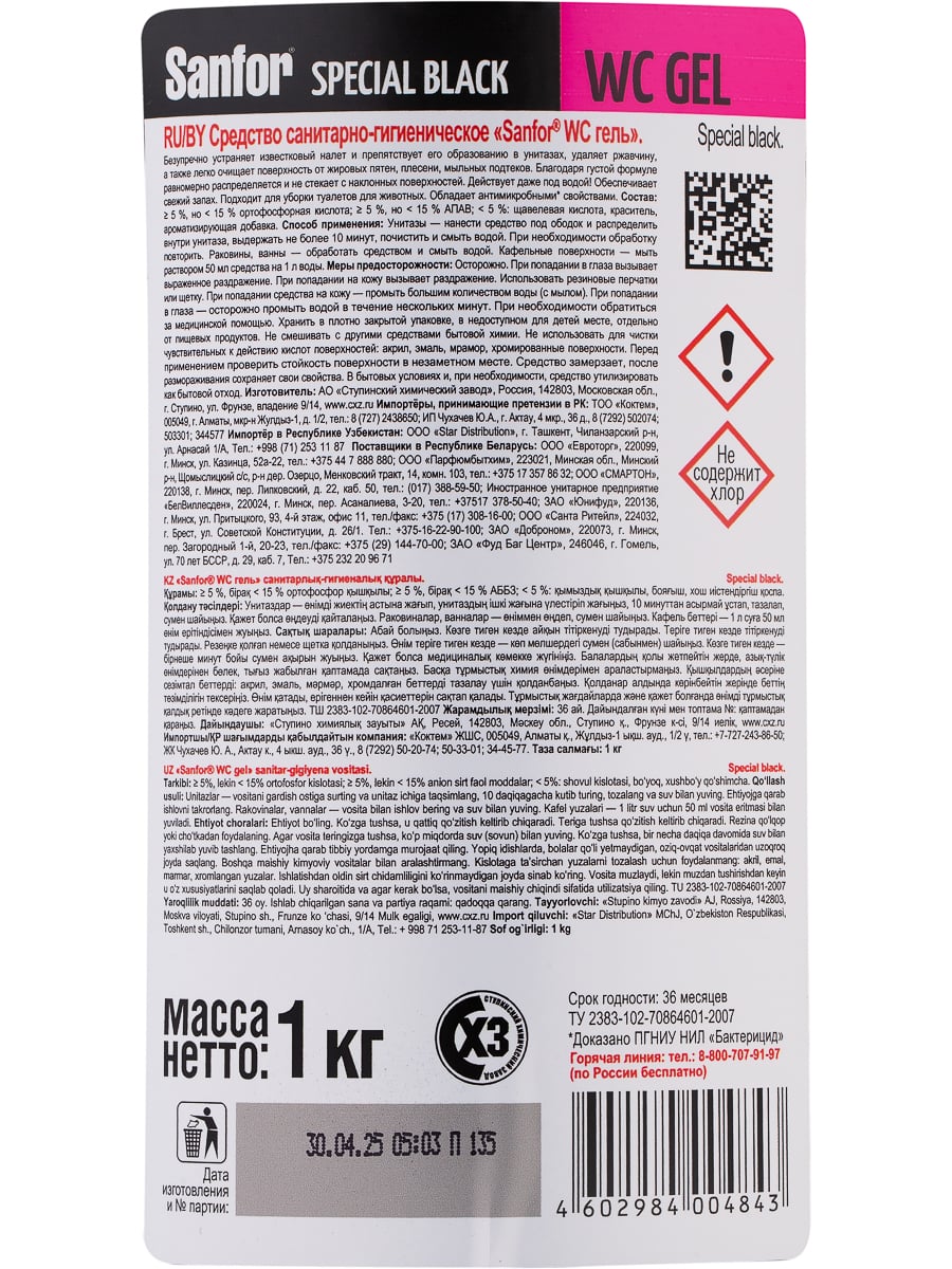 Sanfor WС Гель Санитарно-гигиеническое средство "Special Black Ультра Сила" 1кг