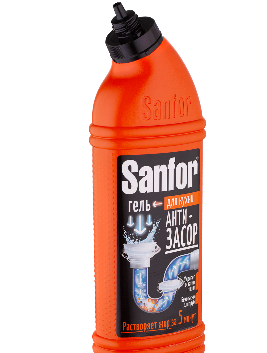 Мощное средство для читки всех типов засоров от бренда SANFOR подходит для дома, кухни, ванной и туалета. Очистка канализационных труб происходит в течение 1-5 минут, достаточно залить очиститель в раковину, ванну или унитаз для удаления засора, после смыть водой. Приятным бонусом будет дезинфекция всех поверхностей. Подходит для любой пластиковой сантехники. Гель для устранения засоров отлично справляется с вычищением волос, жира, шерсти кошек и других животных, а также подходит для борьбы и устранением неприятного запаха в канализации. Чистящее средство «Санфор» легко выполнит чистку труб, безопасно для пластика и легко прочистит сифон.Объем: 750 г.