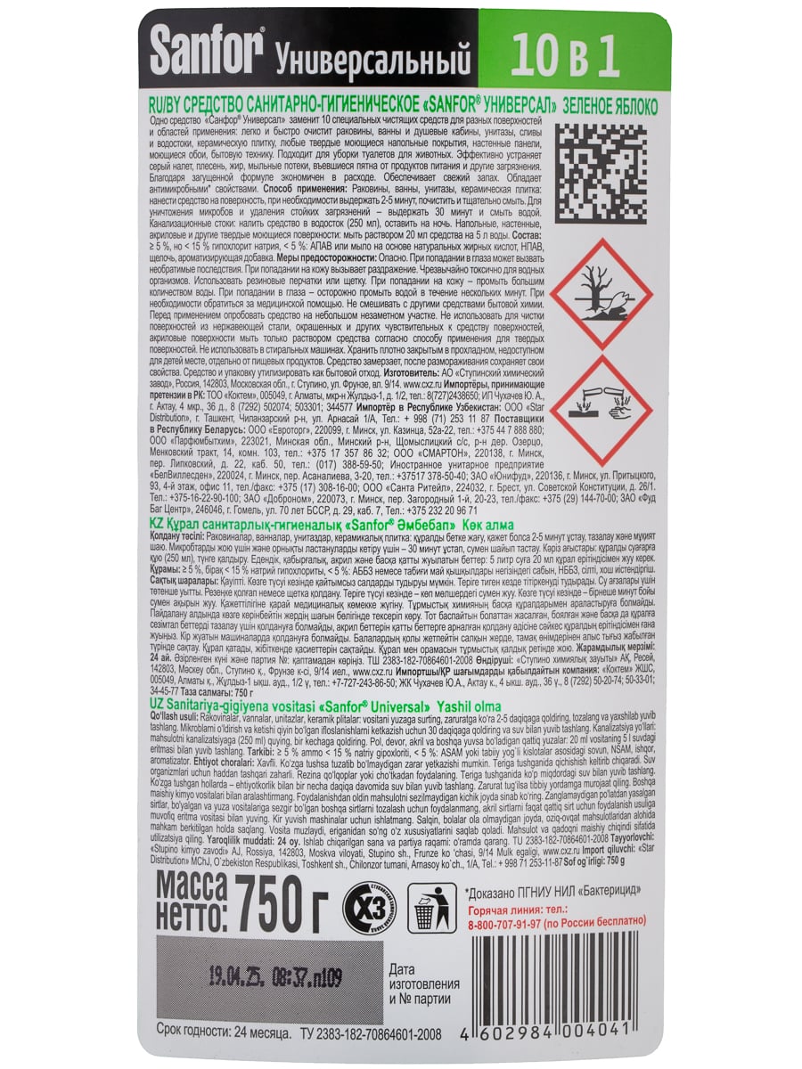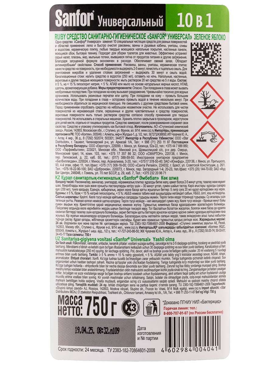 Sanfor Универсальный для уборки дома 10в1 Зеленое яблоко с хлором 750 г