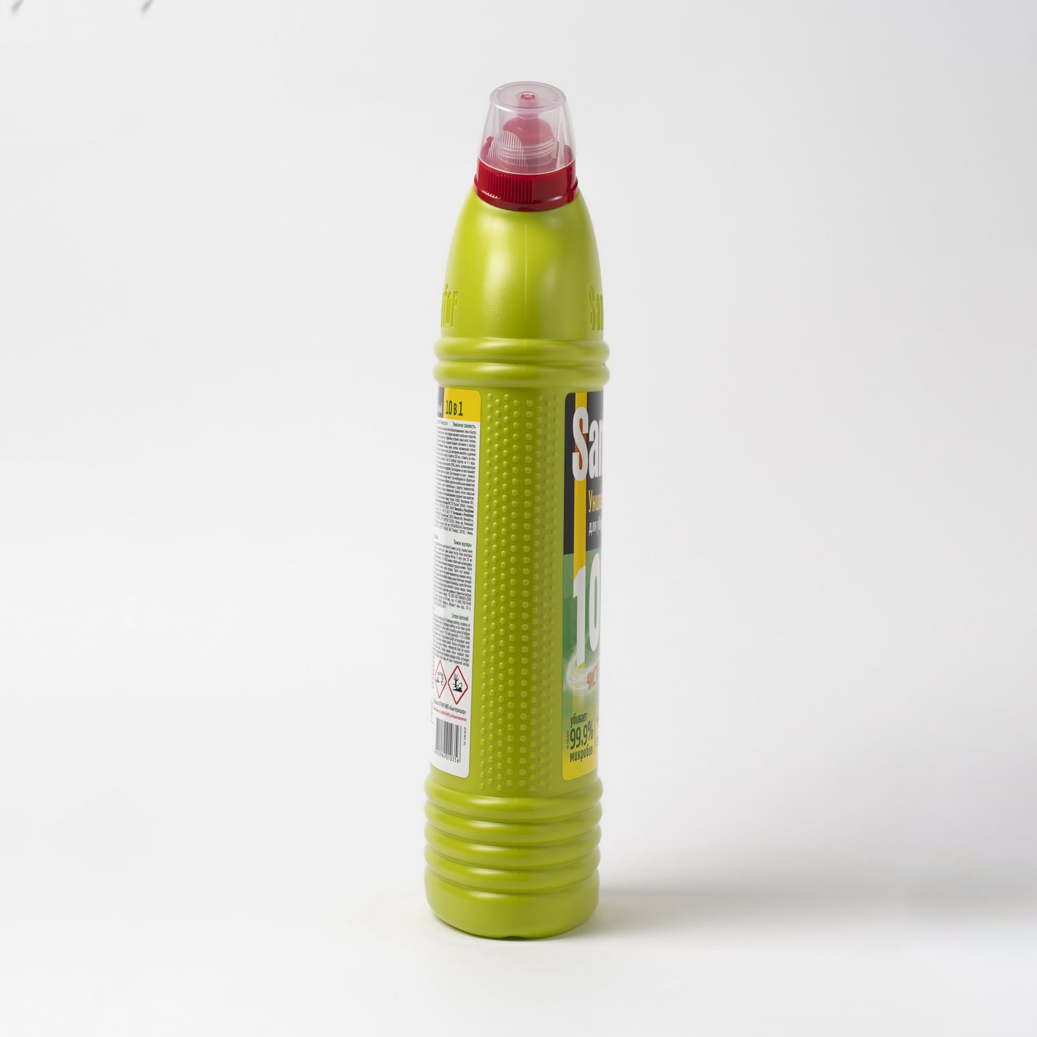 Гель для уборки 10 в 1 от Sanfor – универсальное чистящее средство для эффективной и быстрой очистки различных поверхностей в вашем доме. Он идеально подходит для уборки ванной, душевой кабины, унитаза, раковины, плитки и напольных покрытий, а также поверхностей на кухне. Очиститель имеет дезинфицирующее действие, благодаря которому удаляются микробы и неприятные запахи. Оно эффективно чистит загрязнения и жир, быстро придавая поверхности блеск и белизну. Этот концентрированный жидкий гель имеет антибактериальные свойства, дезинфицируя и уничтожая микробы, обеспечивая максимальную чистоту и гигиену. Поставляется в литровой бутылке, что делает его экономичным в использовании. Средство содержит хлор для дезинфекции. Он эффективно очищает от разводов и не оставляет следов на поверхности, устраняя серый налет, грязь, плесень и грибок. Концентрат можно использовать не только для мытья туалета и кухни, но и других помещений в доме. Он подходит для чистки сантехники, слива, водостоков и других поверхностей, гарантируя чистоту и безопасность надолго. Погрузитесь в атмосферу свежести и чистоты с ароматом, который оставляет моющий гель Санфор после уборки. Ваш дом будет наполнен приятным запахом, а вы сможете насладиться чистотой и белизной, которые обеспечивает это мощное средство бытовой химии. Благодаря загущенной формуле, гель расходуется экономично, равномерно распределяется и не стекает с наклонных поверхностей. Флакон оснащен антискользящей поверхностью, его удобно удерживать в руке во время уборки, а также блокиратором крышки для защиты от детей. Уважаемые покупатели! Обращаем Ваше внимание на возможное изменение упаковки.
