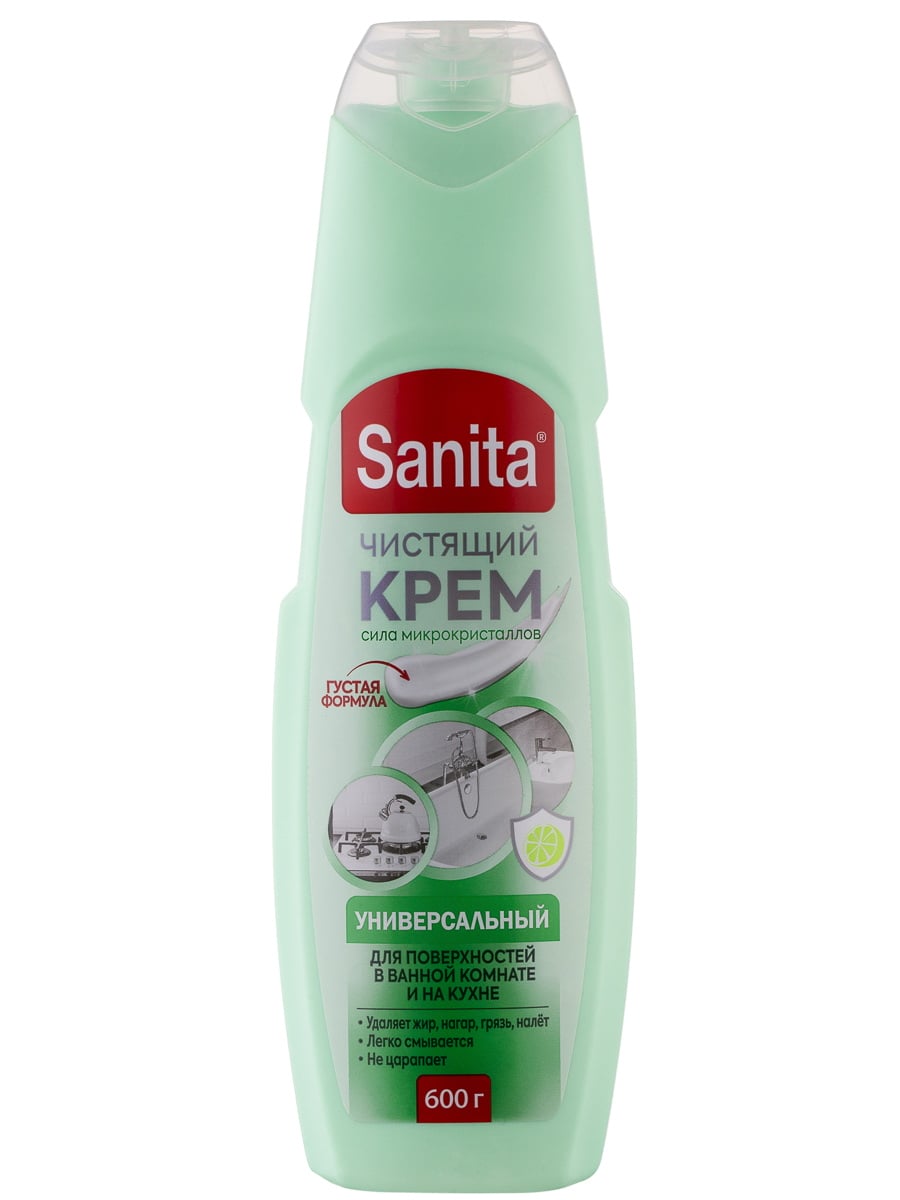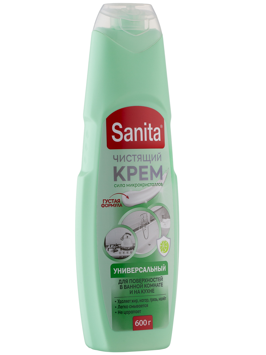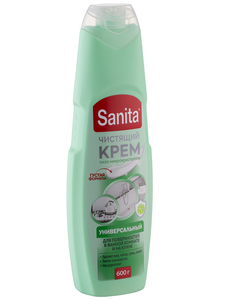Средство чистящее универсальное "Sanita" крем Универсал. Универсальный крем для очистки различных поверхностей на кухне и в ванной комнате.Содержит природные компоненты, которые эффективно справляются с жиром, грязью, нагаром и известковым налетом. Средство бережно очищает поверхности, легко смывается, не оставляет разводов после высыхания