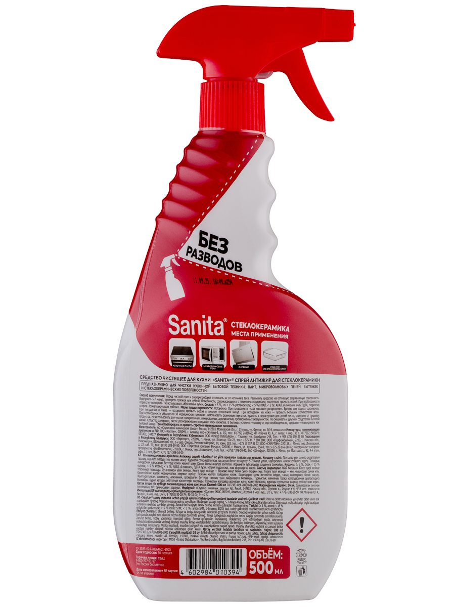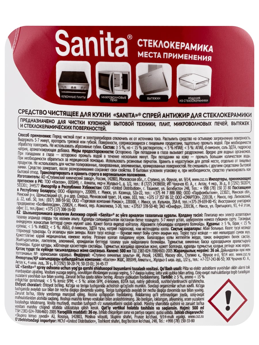 Спрей SANITA Антижир для стеклокерамики 500 мл
