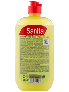 Sanita в удобном флаконе – моет до скрипа! Санита лучшее решение для безупречной чистоты и безопасности. Наше моющее средство разработано специально для удаления жира, загрязнений, неприятных запахов, обеспечивая максимальный результат при каждом мытье. Всего одна капля жидкости создаст густую пену, отлично работает даже в холодной воде, не оставляя следов, жирных пятен и разводов. Гель безопасен для рук – не сушит кожу, имеет нейтральный PH, и полностью смывается водой, не оставляя даже невидимых следов на посуде. Вы можете выбрать для себя удобный формат: от флакона 450 мл (наборы из двух штук по выгодной цене) до канистры 5 литров, и приятный аромат на Ваш вкус: сицилийский лимон и мелиса, лаванда и розмарин, грейпфрут и мята, матча и лайм, японская сакура и миндаль, мандарин и белый чай, алоэ и зеленый чай . Ступинский химический завод - официальный производитель хозяйственных товаров и бытовой химии.